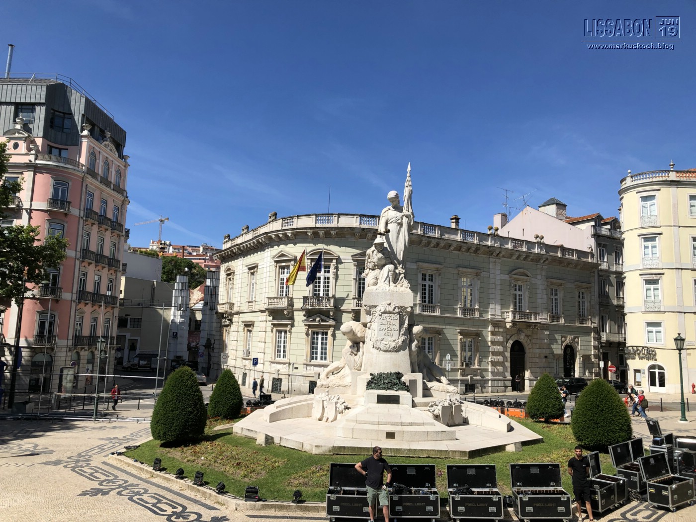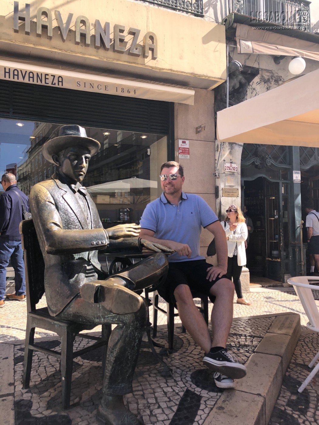Letztes Frühstück in Portugal nochmal im Cafe A Brasileira. Dann noch ein kleines Stückchen Fußmarsch zum Teja am „Praca do Cmercio“ Platz um die letzten Minuten in der Sonne zu genießen.