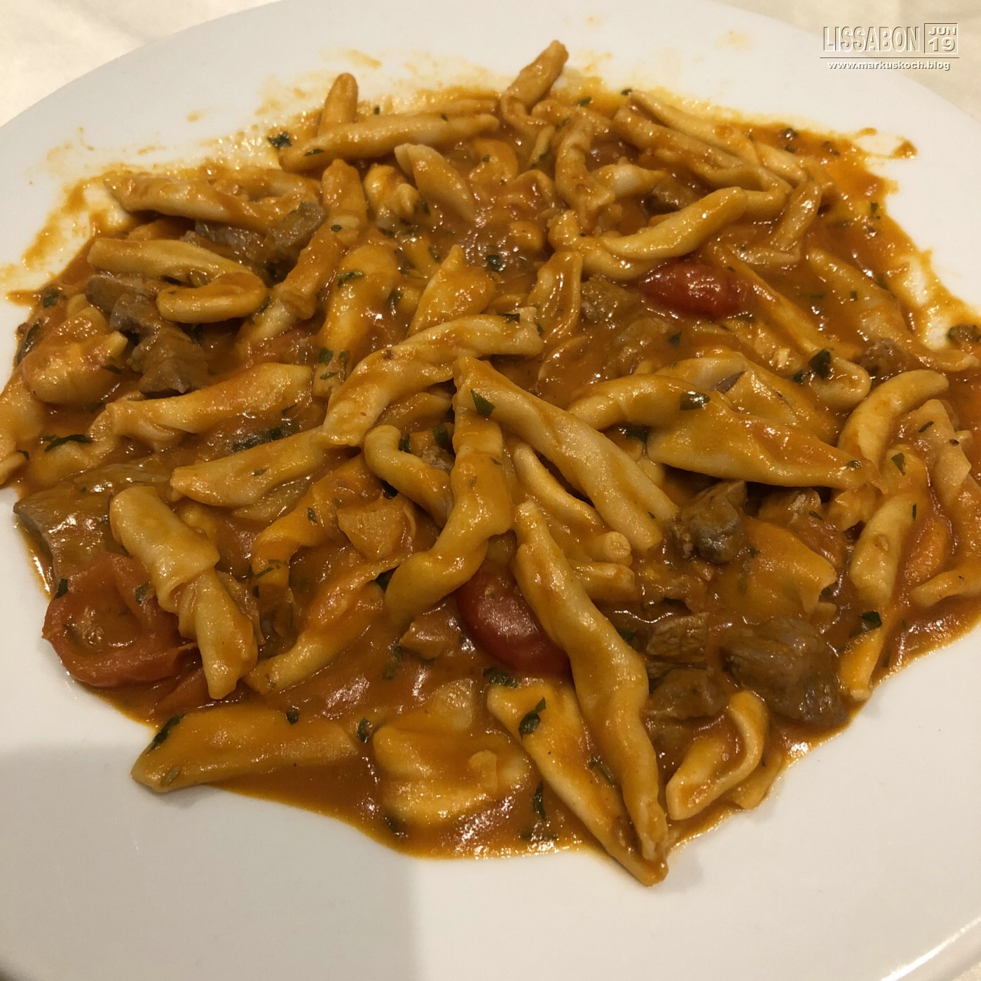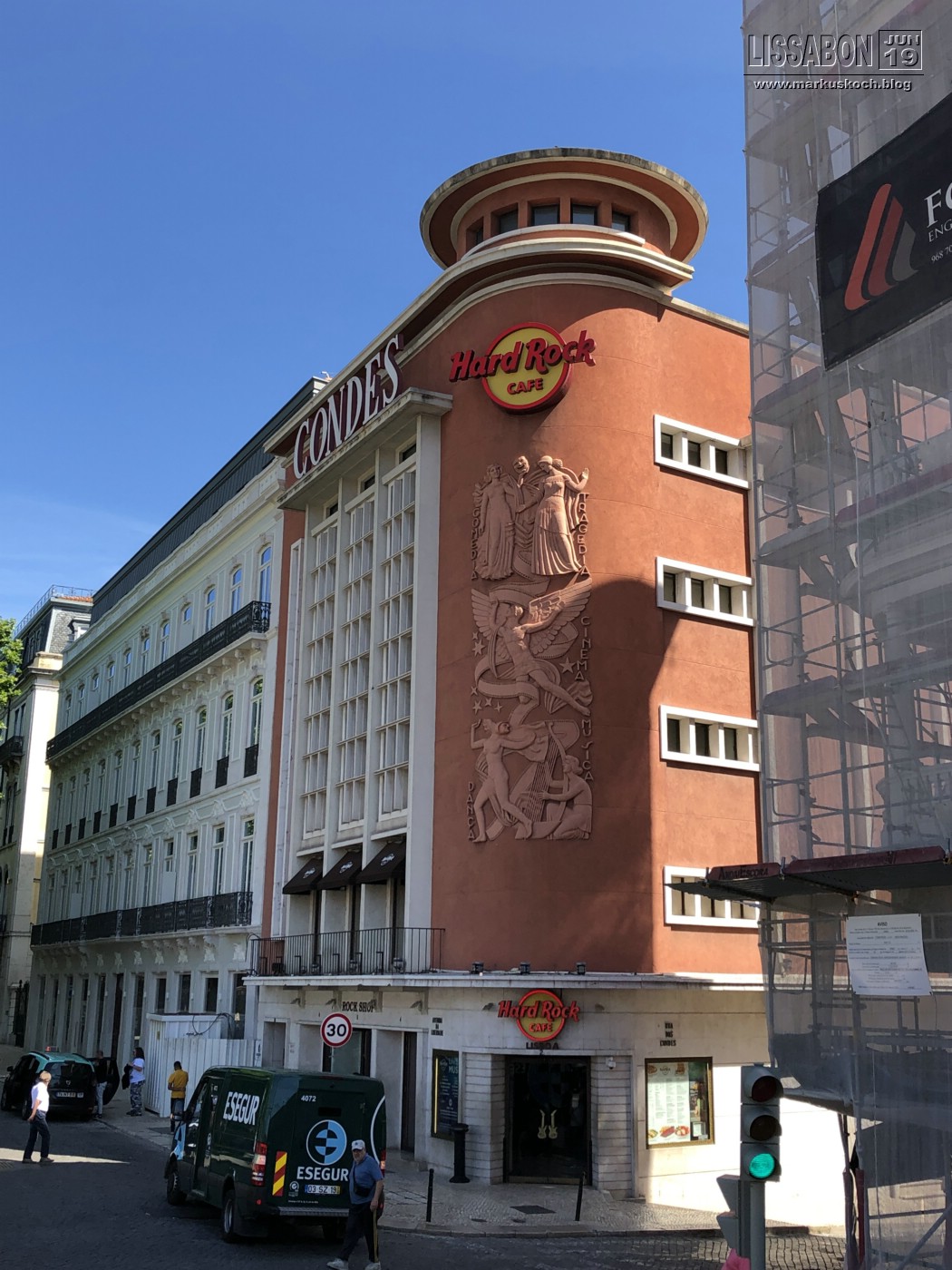 Mit dem Bus fuhren wir dann zum Start/Endpunkt der Linie (Praca Marques de Pombal). Von dort liefen wir die Avenida da Liberdade abwärts, vorbei am Hard Rock Cafe, und speisten sehr lecker Italienisch zu Abend (Ristorante Da Vinci).