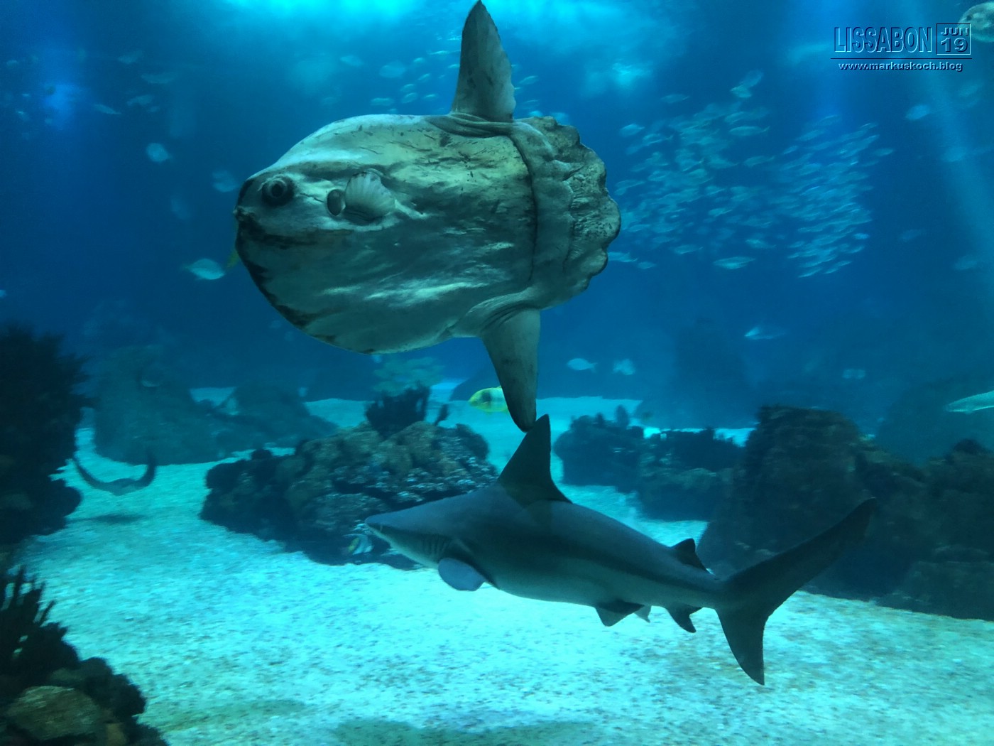 Nach einer Eis-Pause und dem Besuch des Wasser-Spielparks (ohne Eintritt) besuchten wir das (angeblich) zweitgrößte Meeresaquarium der Welt „Oceanario de Lisboa“. Ein echt riesiges Wasserbecken in der Mitte und stets zu sehen beherbergte Hai, Rochen, Mantas und viele weitere Meeresbewohner. Außenrum gab es noch Pinguine, Korallen oder andere Meer-Tiere zu sehen.