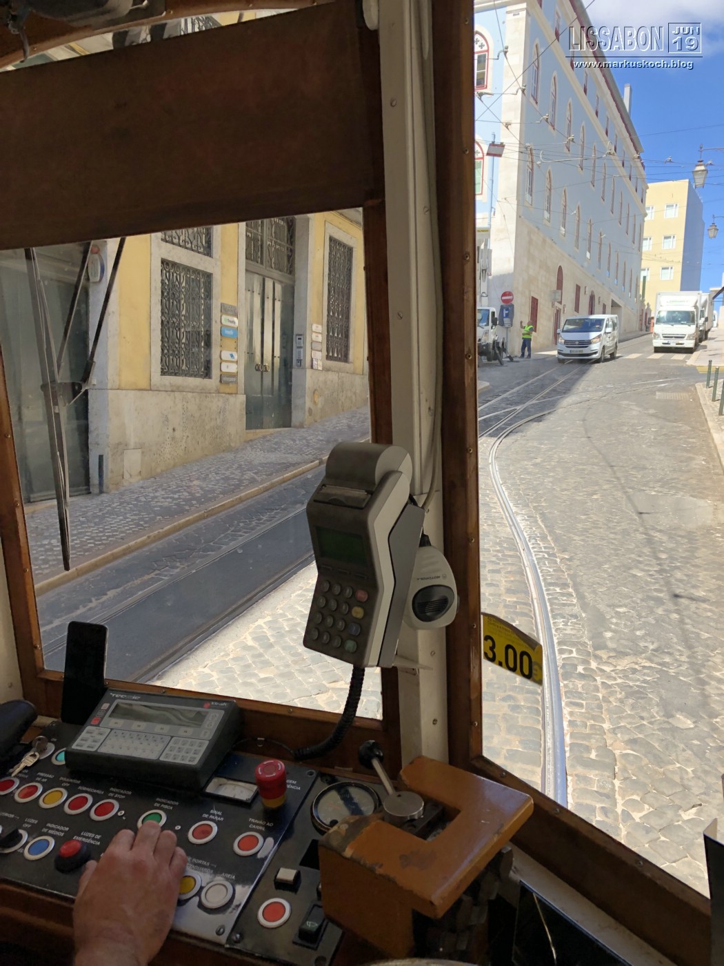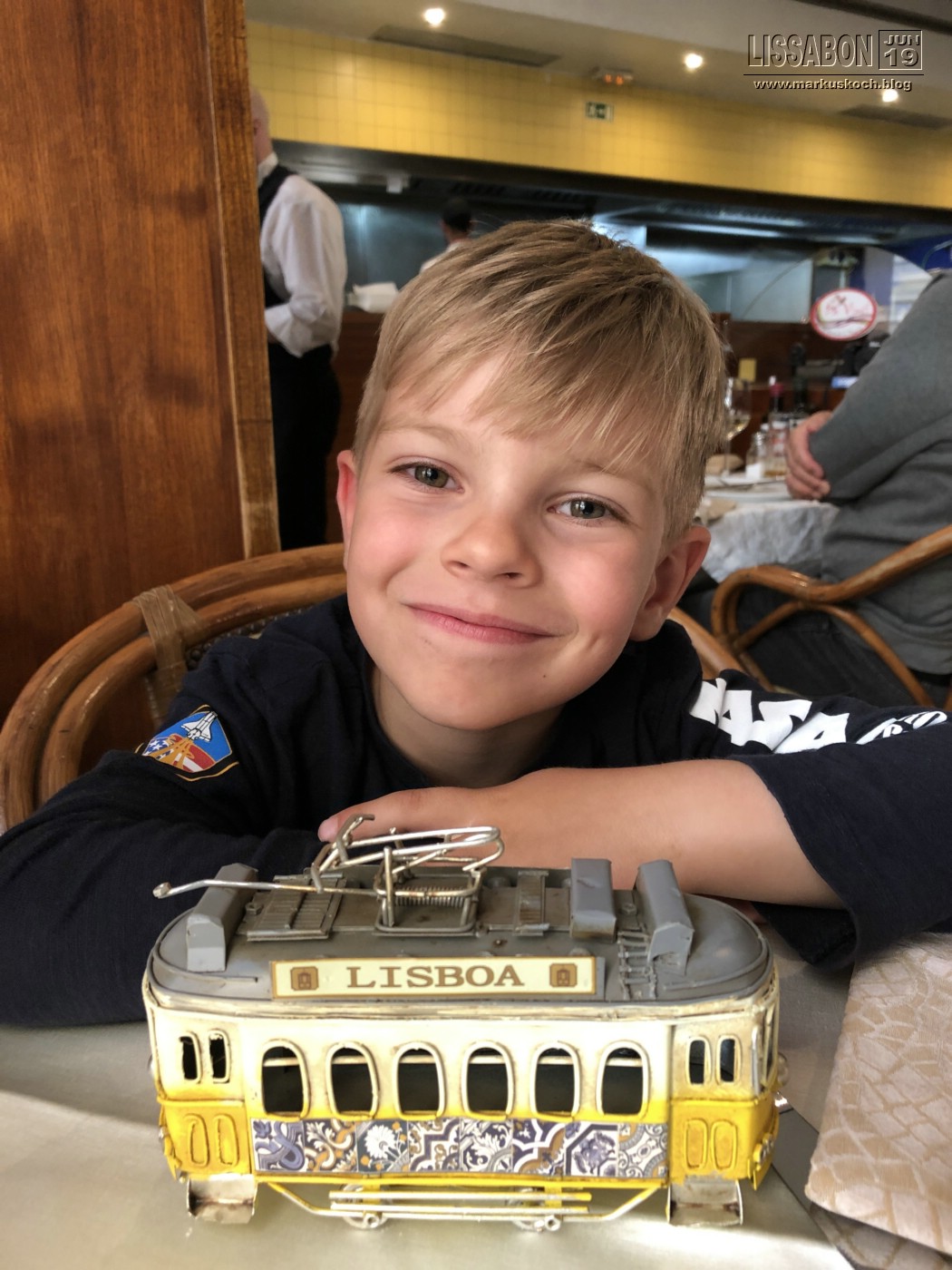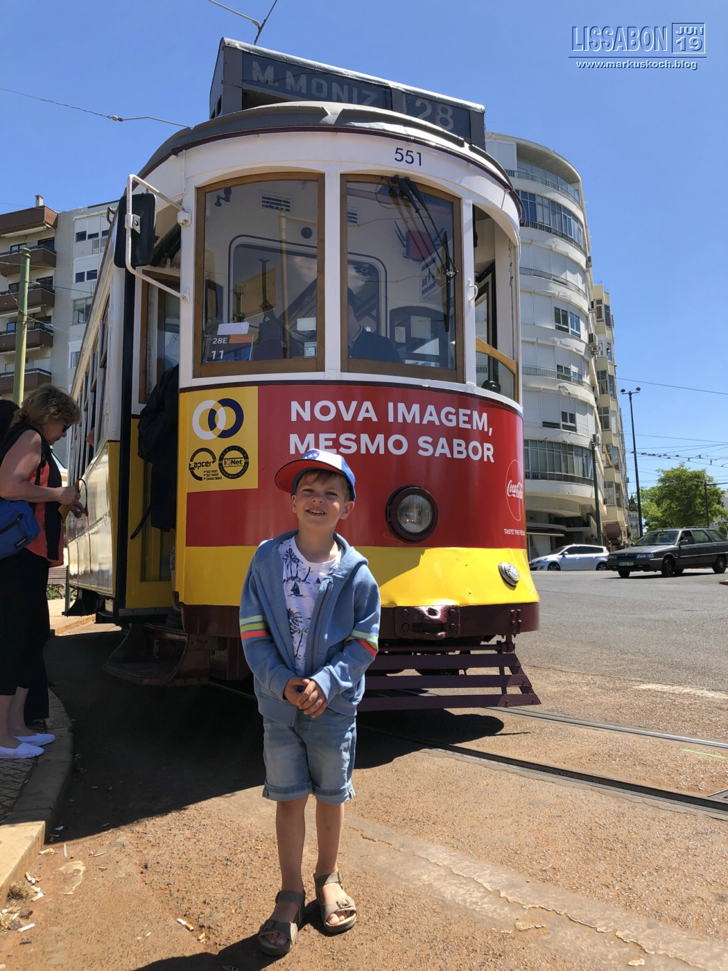 In ganz Lissabon fahren kleine Straßenbahnen herum. Heute wollten wir in einer der berühmtesten, der Tram 28 mitfahren. Zunächst in die westliche Richtung bis zur Endstation. Dort war auch endlich mal ein erreichbarer Spielplatz, wo sich Luca austobte.