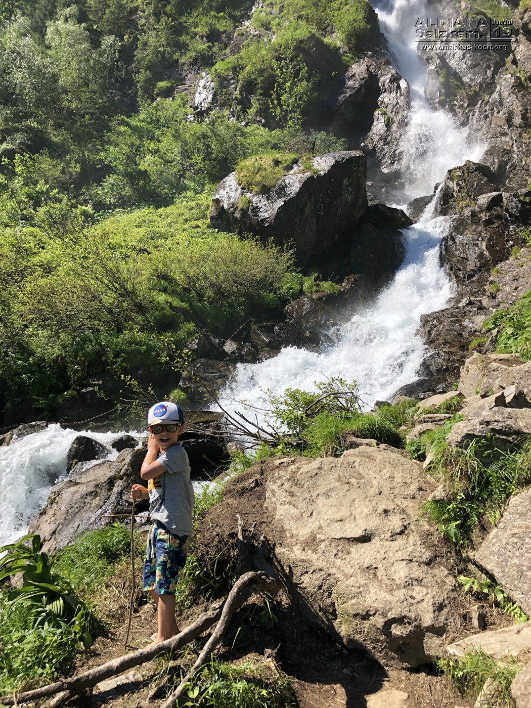 Gleich nach dem Frühstück machten wir uns auf zum Steirischen Bodensee, wo wir letztes Jahr auch schon waren. Nur dieses Mal hatten wir das Fahrrad dabei und Luca fuhr den Weg zum See und dann bis zum Ende davon. Dort stellten wir das Fahrrad ab und wanderten zu einem Wasserfall. Er hat toll durch Stock & Stein mitgemacht. Wichtig war ihm, einen Stock zu finden 😉