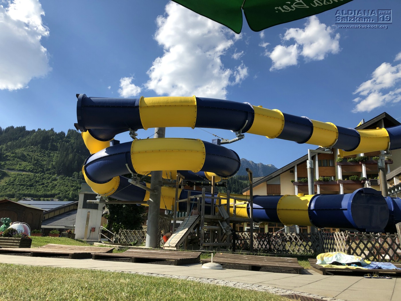 Da für heute das Wetter dann doch mal wirklich schlecht gemeldet war, gingen wir mit unseren Bademänteln durch den Keller zur angeschlossenen Grimming Therme (ist im Preis dabei, so oft & so lange man möchte).  Dort konnten wir rutschen, schwimmen, springen und chillen.