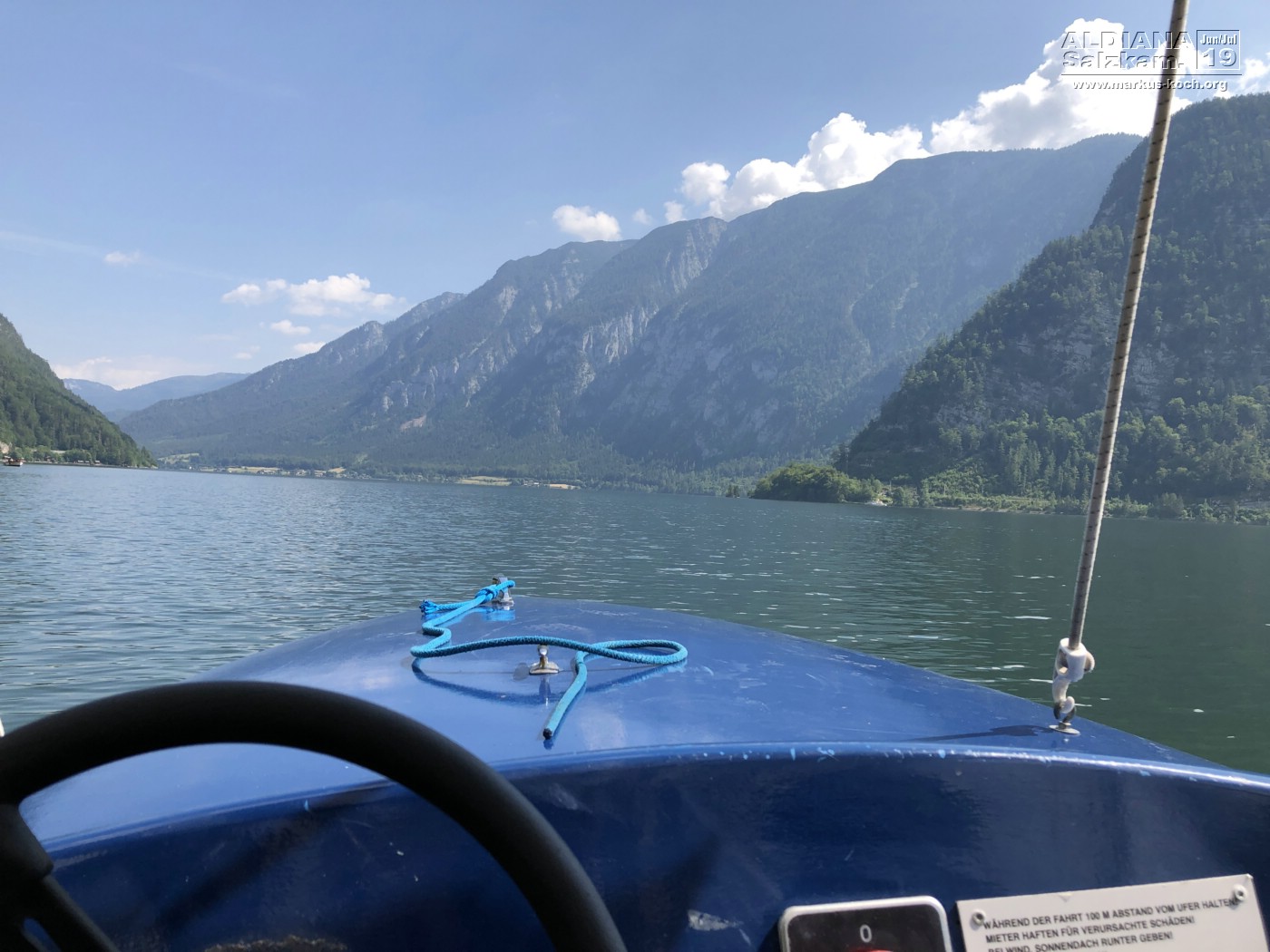 Den Vormittag nutzen wir direkt aus, um ins 40 Min. entfernte Weltkultur-Erbe Hallstatt am Hallstätter See zu fahren. Dort mieteten wir uns für eine Stunde ein Elektroboot. Mit Kapitän Luca am Steuer war das natürlich ein Highlight um auch Hallstatt von Wasser zu sehen.