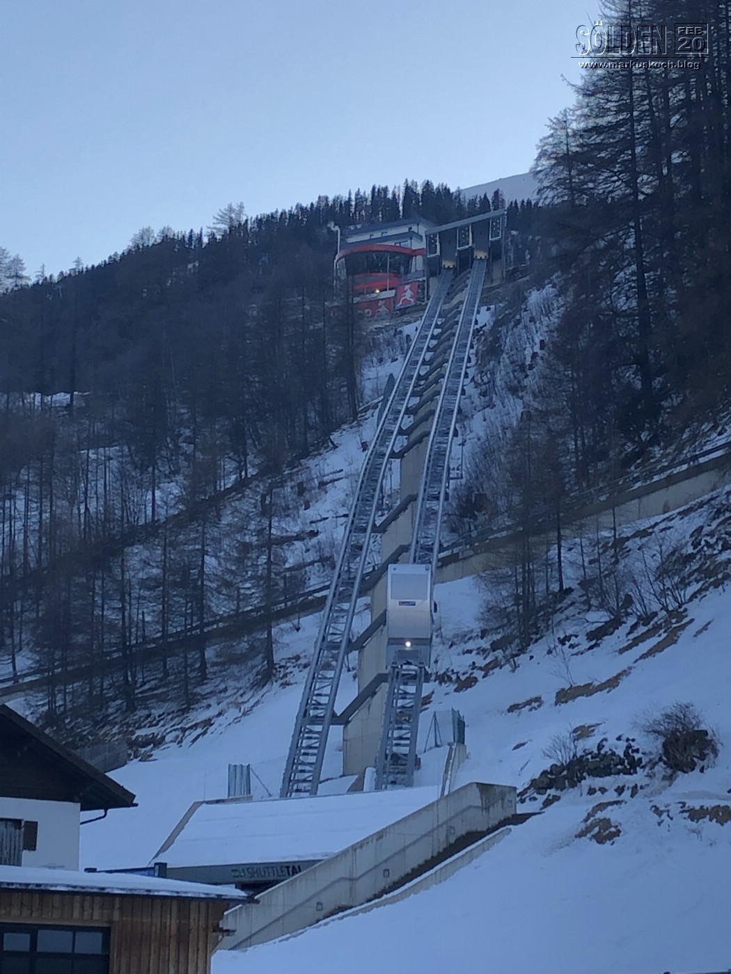 Am Sonntag fuhren wir in Ober-/Hochgurgl Ski. Der Skibus brachte uns recht schnell dorthin und so konnten wir mit als erste den Lift benutzen.