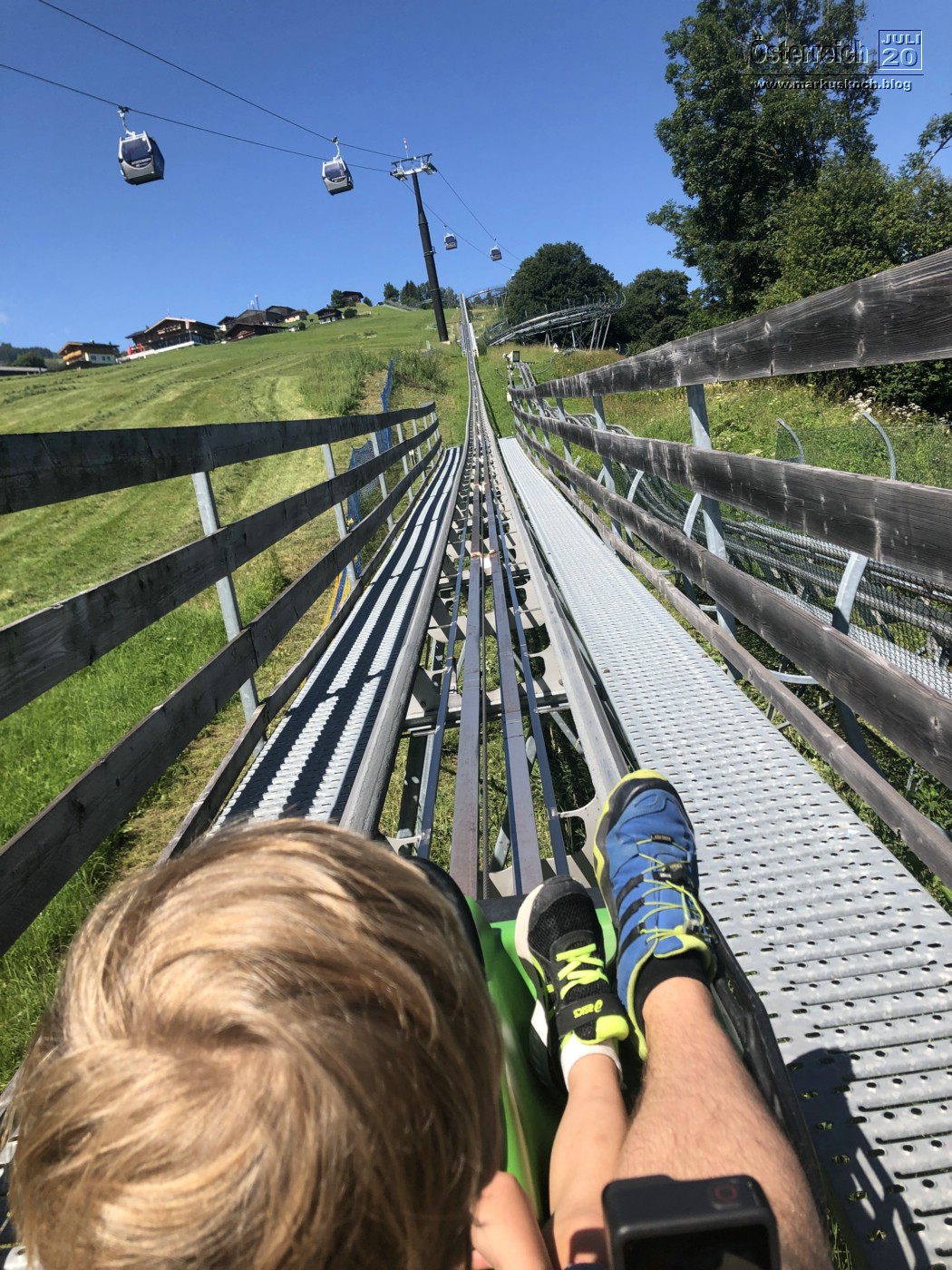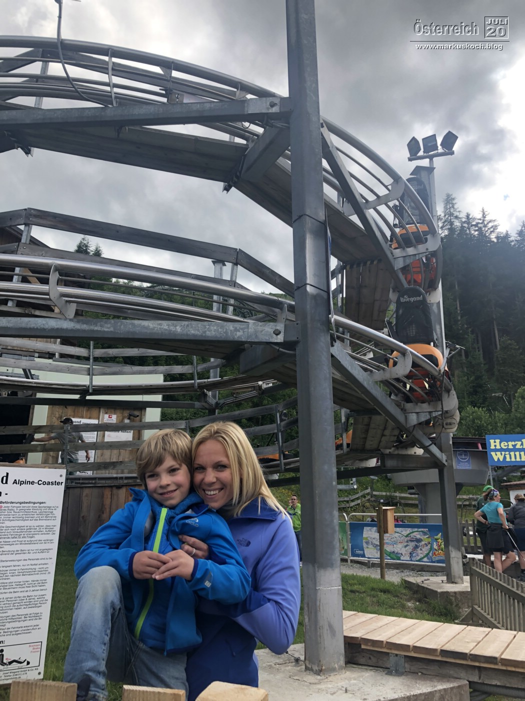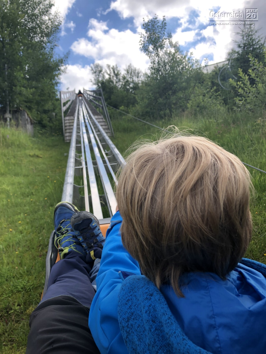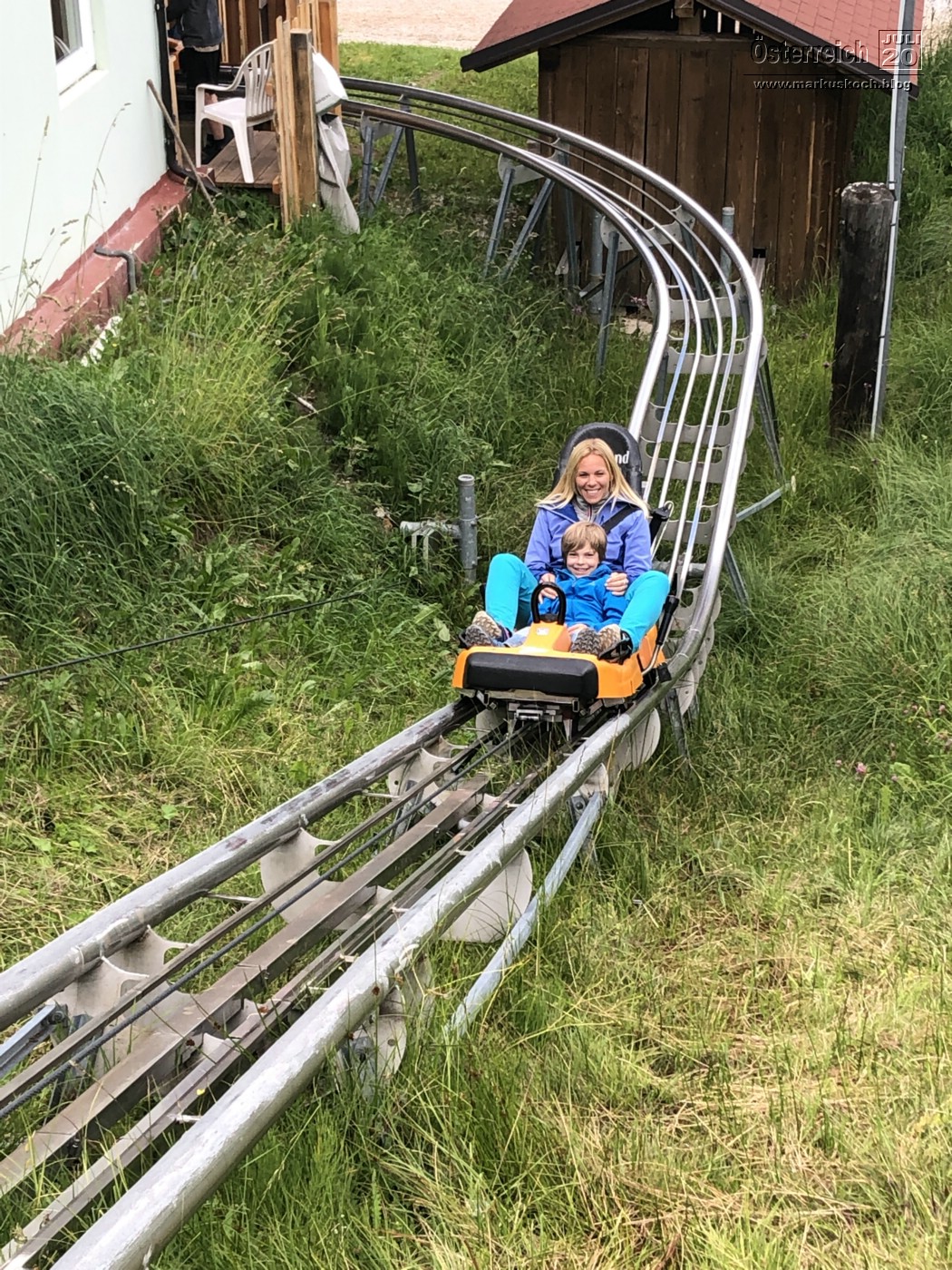 Entspannt starteten wir bei herrlichem Wetter mit den Fahrrädern zum Maiskogl. Dort wollten wir zunächst nur den Maisiflitzer (Sommerrodelbahn) fahren. War echt super!