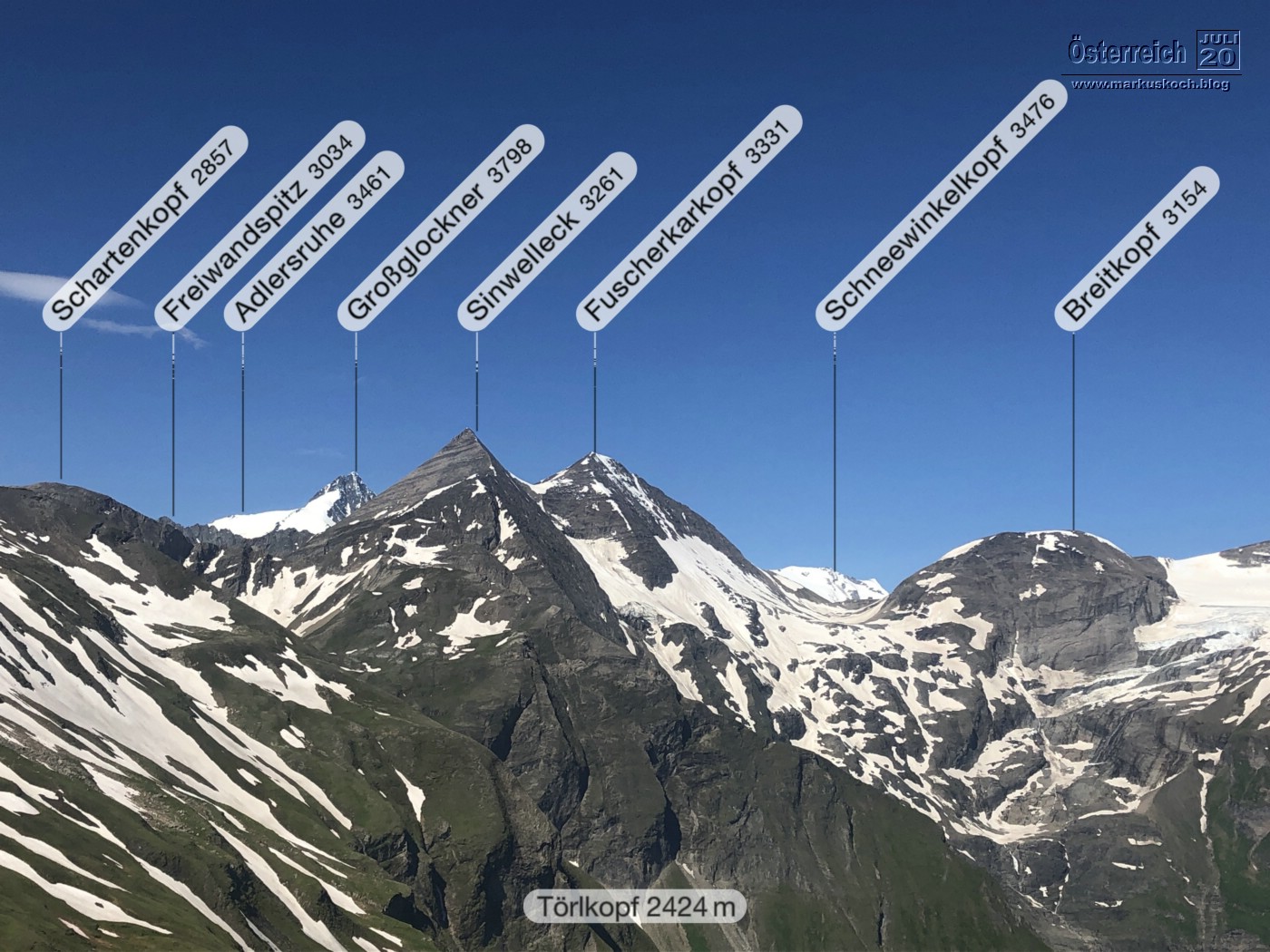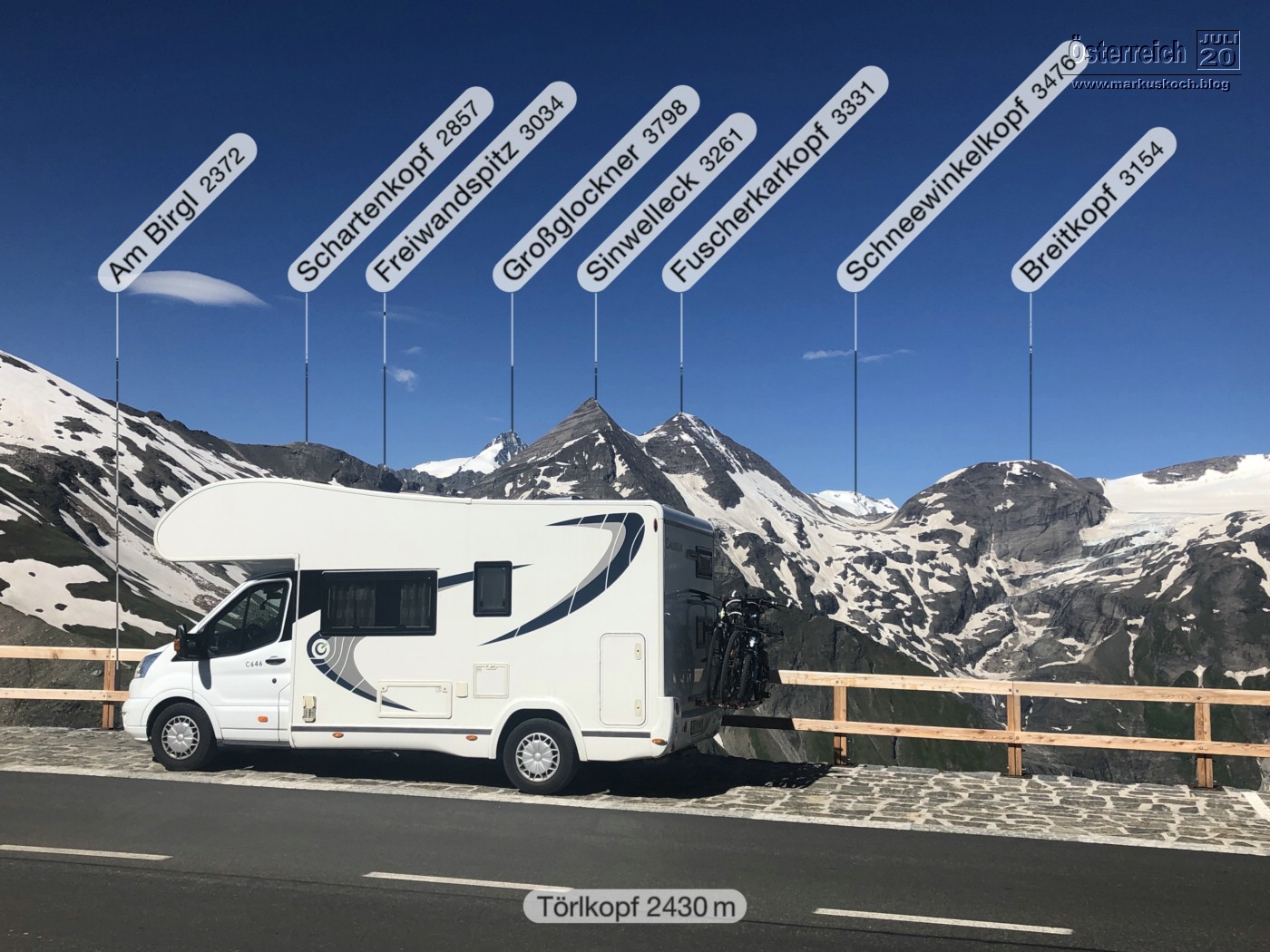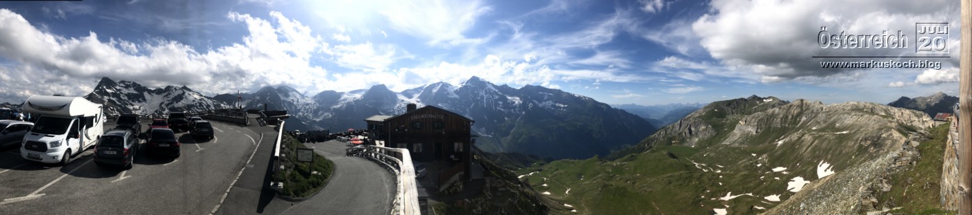 Heute ging es hoch hinauf…. Bis auf 2.500 hm mit dem WoMo bis zur Kaiser-Franz-Josefs-Höhe mit sensationellem Blick auf den Großglockner, Österreichs höchsten Gipfel mit 3.798 m.