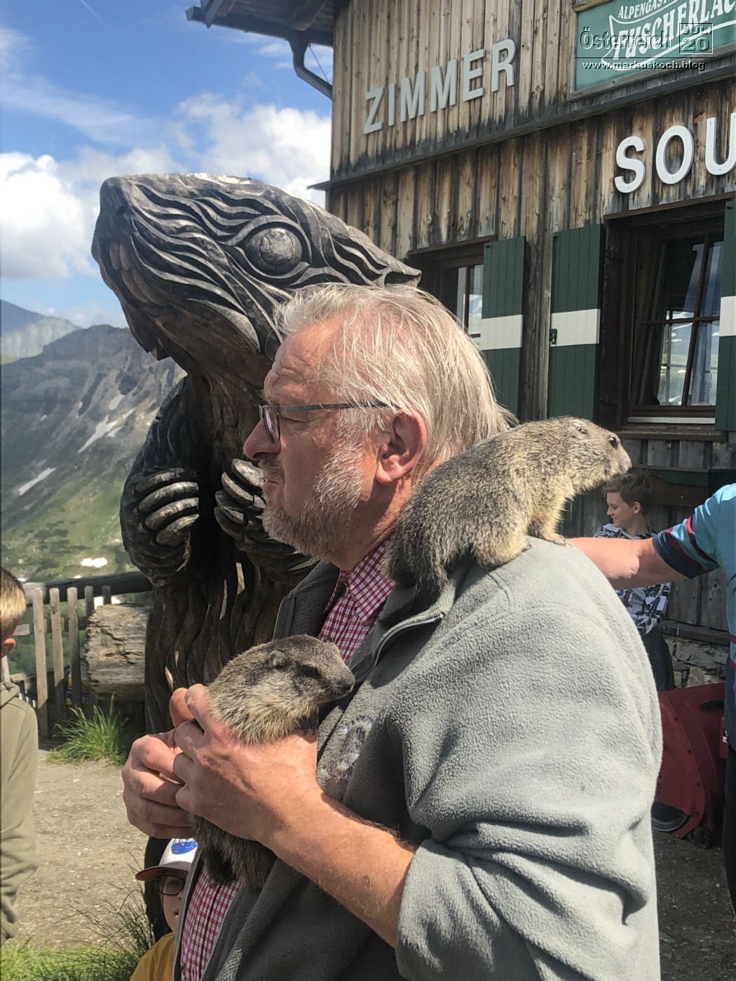 Auf dem Rückweg machten wir beim Mankeiwirt, der Wirt der Murmeltiere, an der Fuscher Lacke halt. Dort war für Luca ein super Spielplatz. Zwischendurch zeigte uns der Wirt das Murmeltier Muttertier mit den zwei kleinen Geschwistern. Super süß!