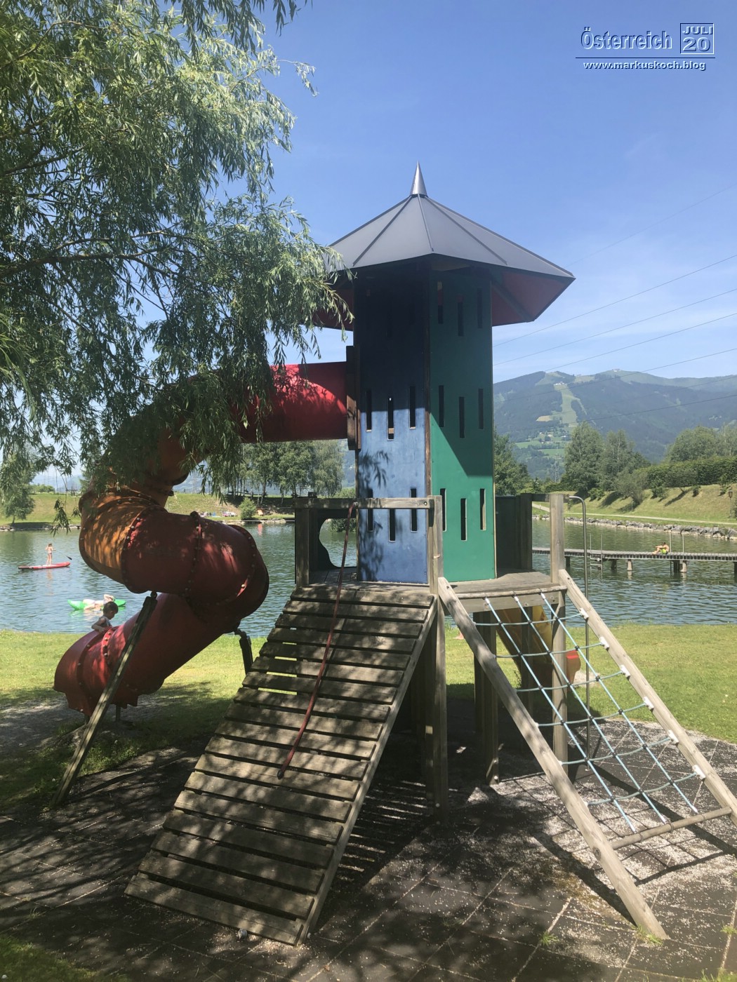 Heute am späten Nachmittag kommt Marie aus Verona zurück nach Zell am See. Bis dahin vertrieben Luca & ich die Zeit am CG im/am Naturbadesee.