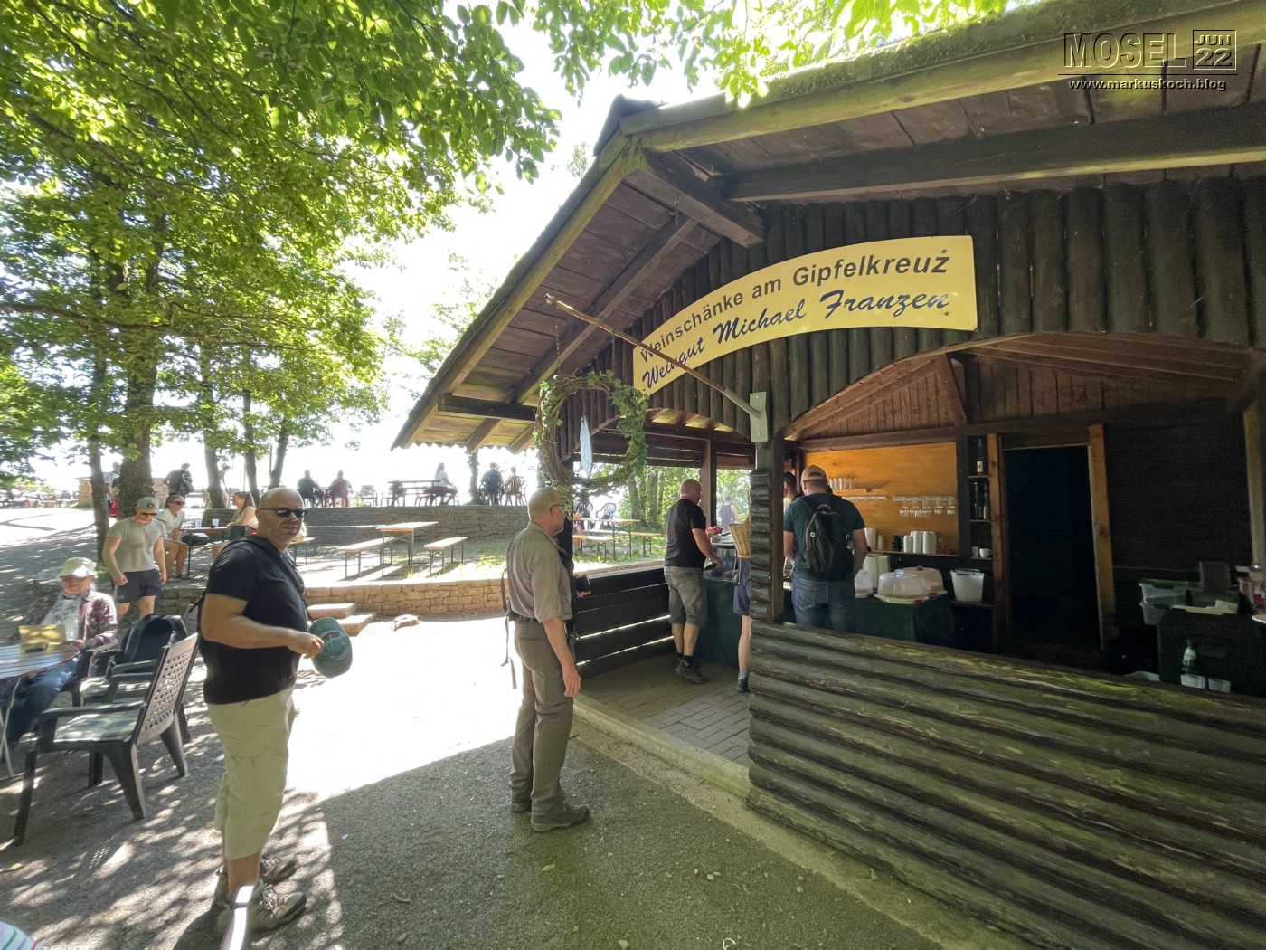 Am späten Nachmittag hieß es dann „Weinblütenwanderung … zum Herrgott hinauf“ in Wintrich. Einmal Wein bezahlt und mit dem Becher dann immer fleißig nachholen können.