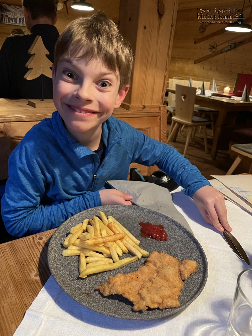 Nach dem Skifahren fuhren wir zur Unterkunft Pension Blasius in Hinterglemm. Nach Dusche & auspacken waren wir in der Fuhrmannstube Abendessen.