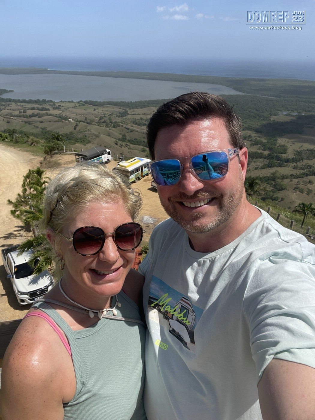 Durch Zufall im Internet einen deutschen Anbieter (www.ausflug-puntacana.de) gefunden, der in einer Gruppe eine Tour „Laguna del Limon“ anbietet. Erst ging es auf einen eher untypisch alleinstehenden Berg mit knapp 400 Hm mit einem Art Safari-Truck. Es war ein sehr schöner Ausblick auf die Lagunen & das Meer. Man konnte auf hohen Schaukeln schaukeln.
