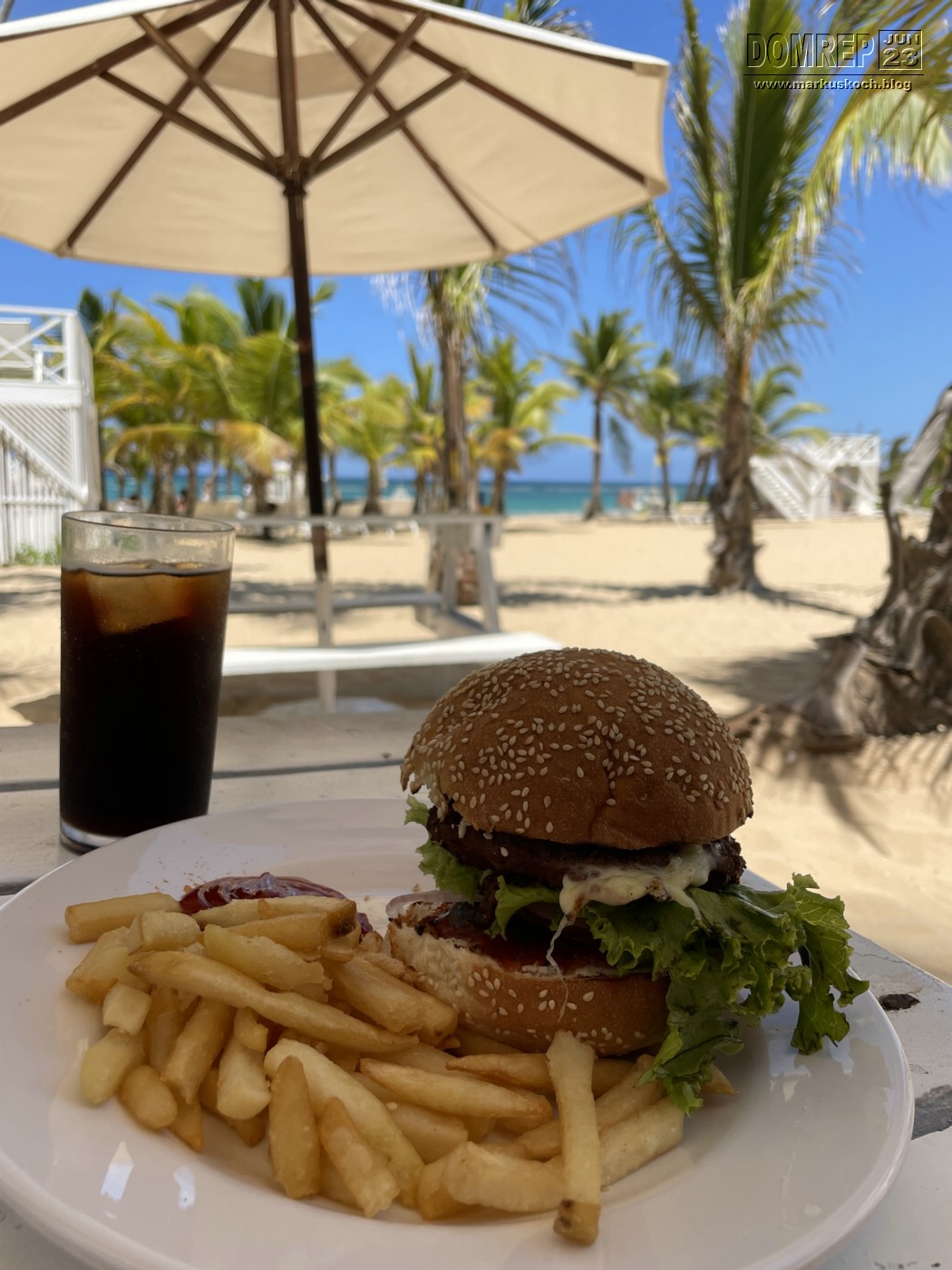 Am Strand ließen wir uns dann mit Mojitos verwöhnen & die Beachbar lockte auch mit u.a. Burgern zum Mittagessen. War alles sehr gut.