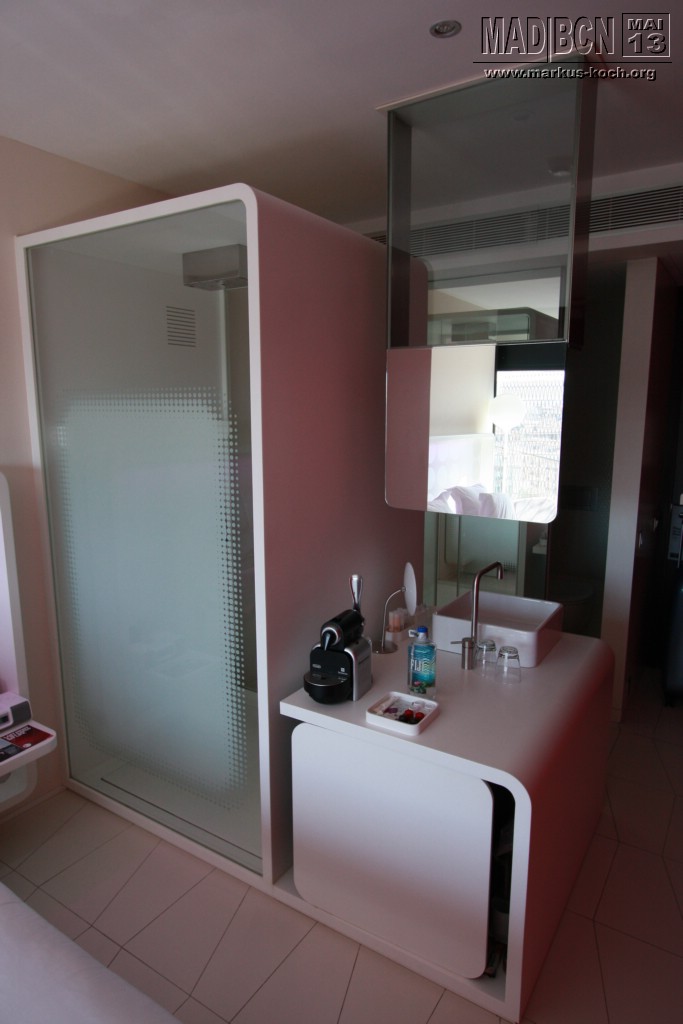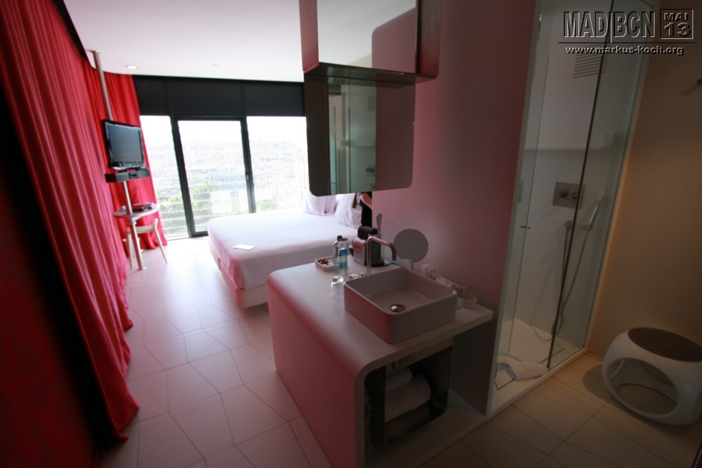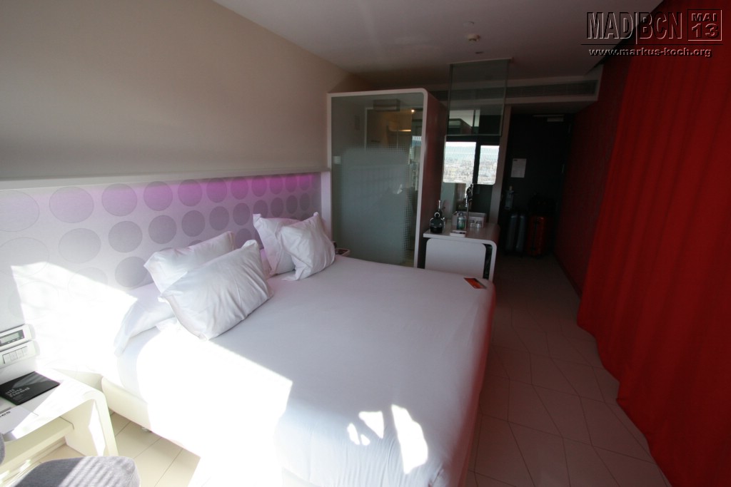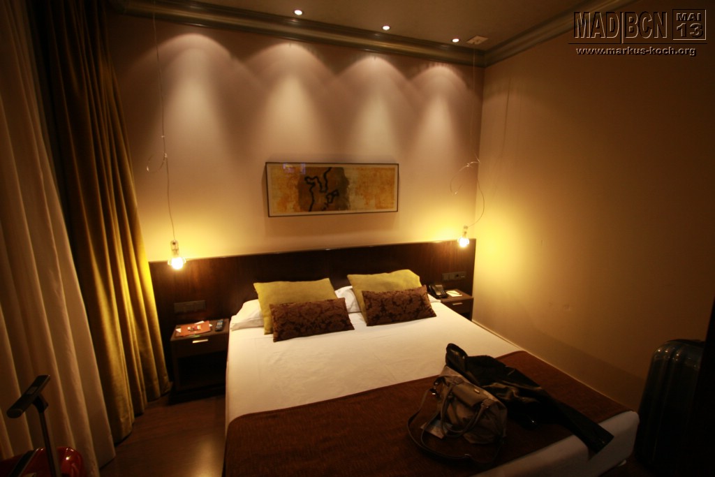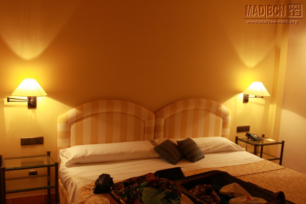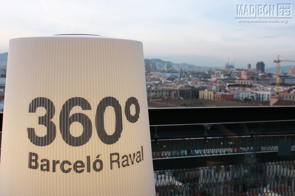 Check-In im Hotel Barcelo Raval & kurze Erholungspause. Das Hotel ist wie ein Zylinder als Designhotel aufgebaut. Sehr stylisch vom Fitnessstudio im Keller über den Ground Floor mit Lounge und Empfang, weiter über unser Zimmer im 9. Stock mit Blick über das Nord-Westliche Barcelona, bis hin über die Dachterasse im 11. Stock mit 360°Grad View über ganz BCN. Echt klasse! Bilder nur vom Hotel gibts unter den Bildern für diesen Tag zu sehen 🙂