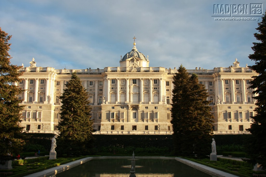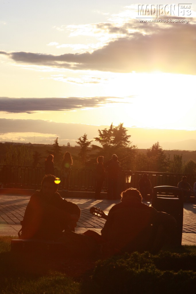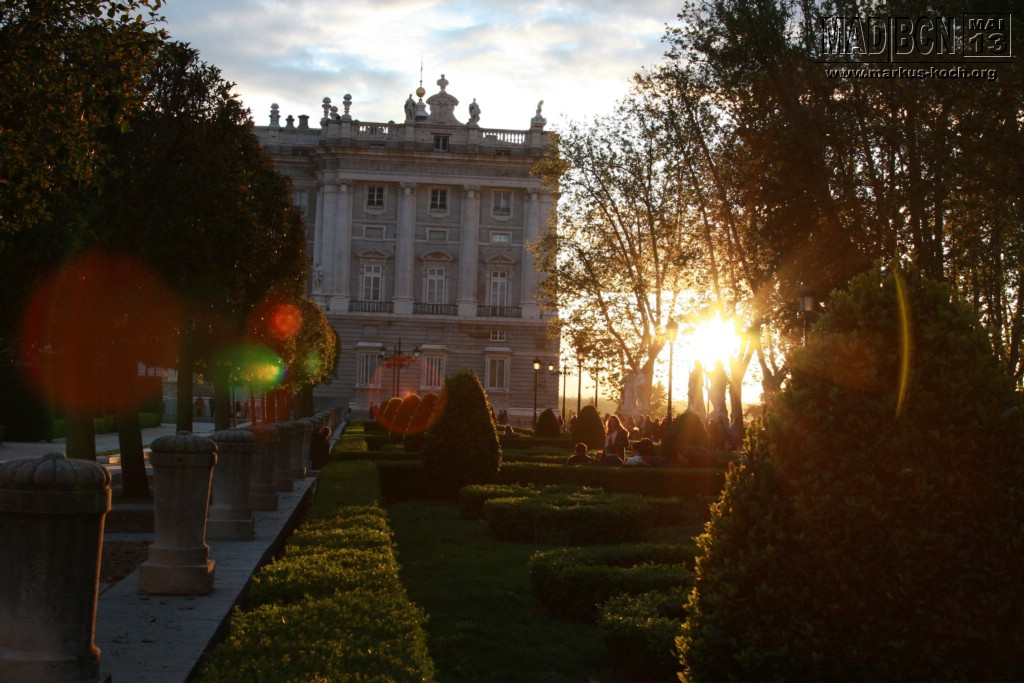 Zurück mit der U-Bahn am Plaza del Sol sind wir nochmal für Sonnenuntergangsbilder vom Palast zum Parque de la Montan.