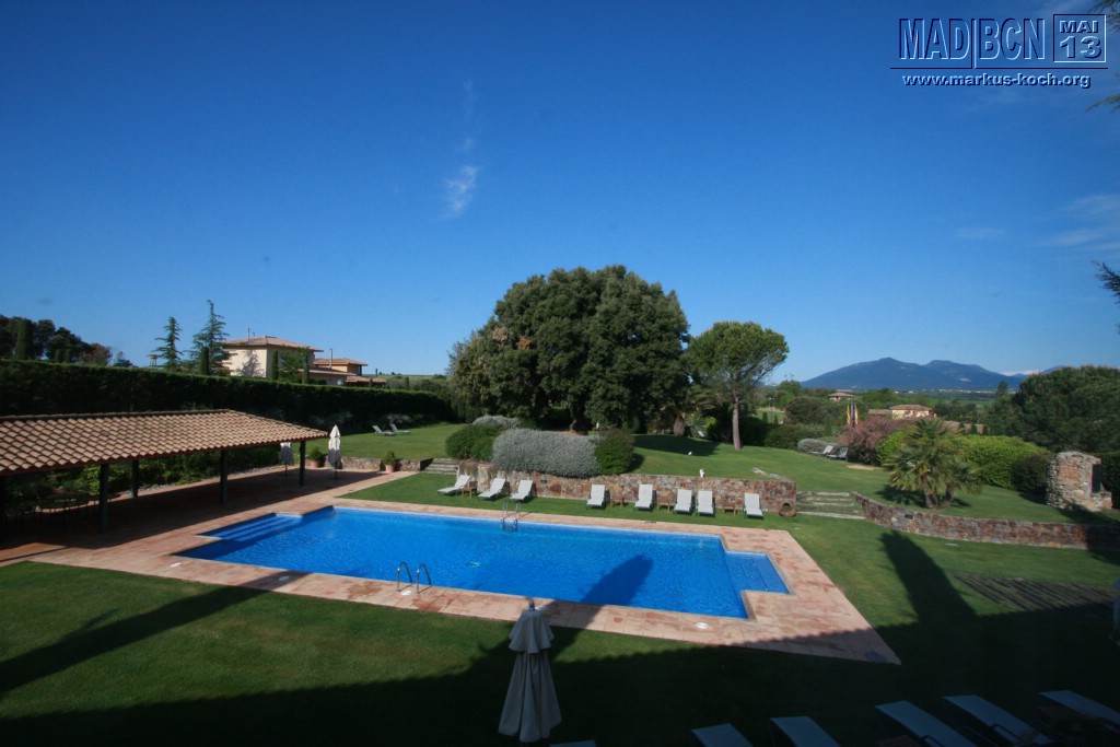 Für die heutige Nacht hatten wir kein Hotel im Voraus gebucht und wollten selbst mal schauen, ob wir ein schönes an der Küste finden würden. Wir fuhren 10-15 km an der Küste von Roses herum, aber leider waren da nur hässliche Betonburgen zu finden oder überteuerte 4 bzw. 5 Sterne Hotels. So entschieden wir uns doch mal über Booking.com ein Hotel zu finden – ein ansprechendes für einen vernünftigen Preis von 60 €/Nacht fürs Zimmer fanden wir in einer Golfanlage von Torreminora. Herrlicher Ausblick, absolute Ruhe, Pool vor der Tür, was will man mehr 🙂