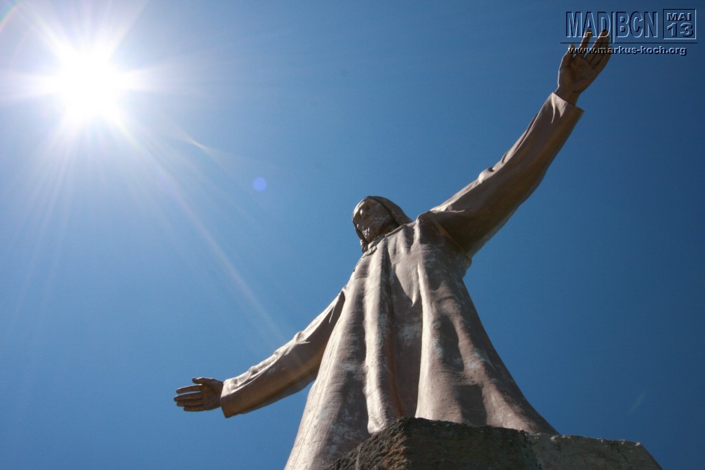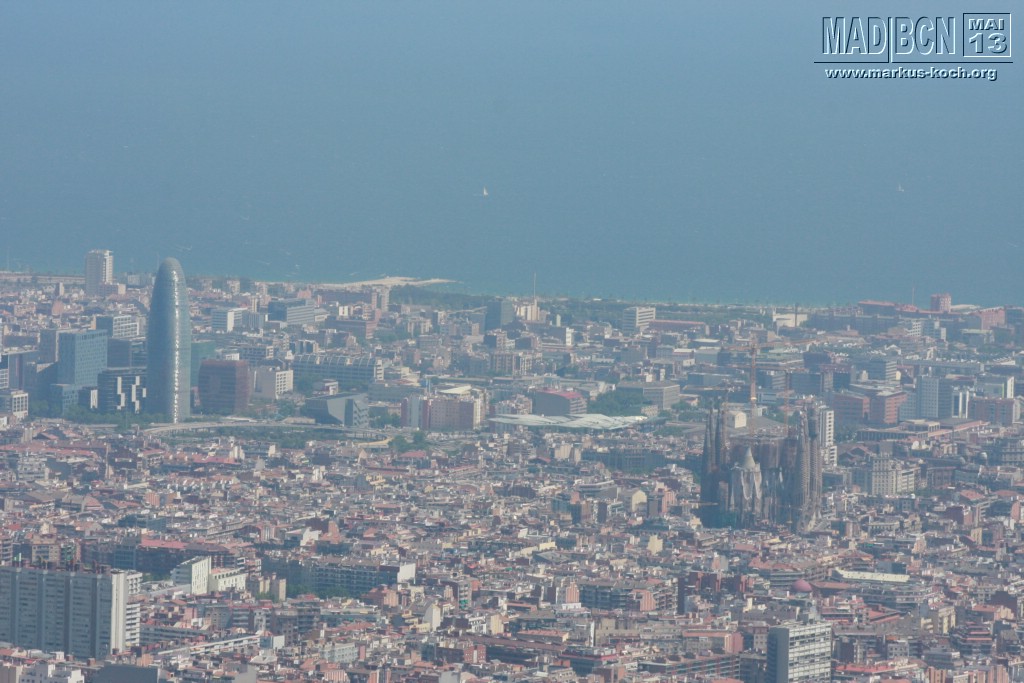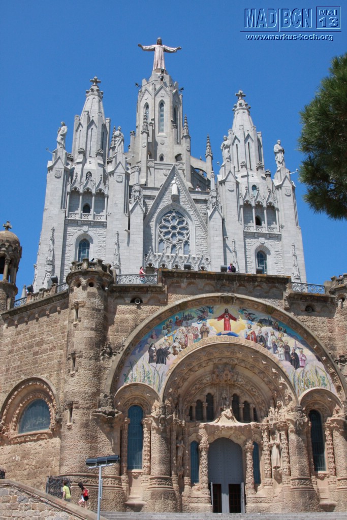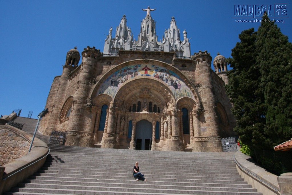 Danach fuhren wir zum Berg Tibidabo (512m üÜ) und besuchten die Kirche El Sagrat Cor (1902), mit einer Christusfigur am höchsten Turm, die über die Stadt wacht. Ein atemberaubender Ausblick über ganz Barcelona. Ursprünglich wollten wir auf den Funkturm Torre de Collserola (288m hoch), welcher aber geschlossen war. Aber der Ausblick von der Kirche war ausreichend und sicher nicht weniger beeindruckend.