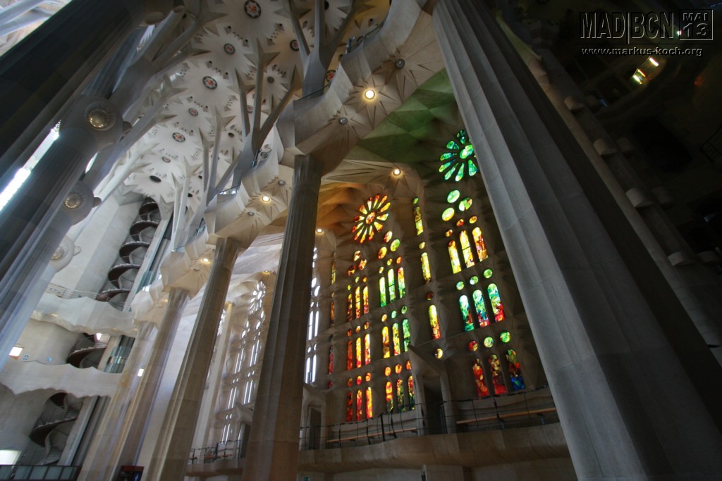 In der Sagrada Familia ist es auch sooo herrlich! Modern, viele Farben, fantastisch! Ein Muss für Barcelona! Ein Besuch auf einem der Westtürme bietet wieder einen Blick auf BCN, aber das sehen wir auch alles von unserer Hotelterrasse aus. Wäre also nicht unbedingt nötig gewesen.