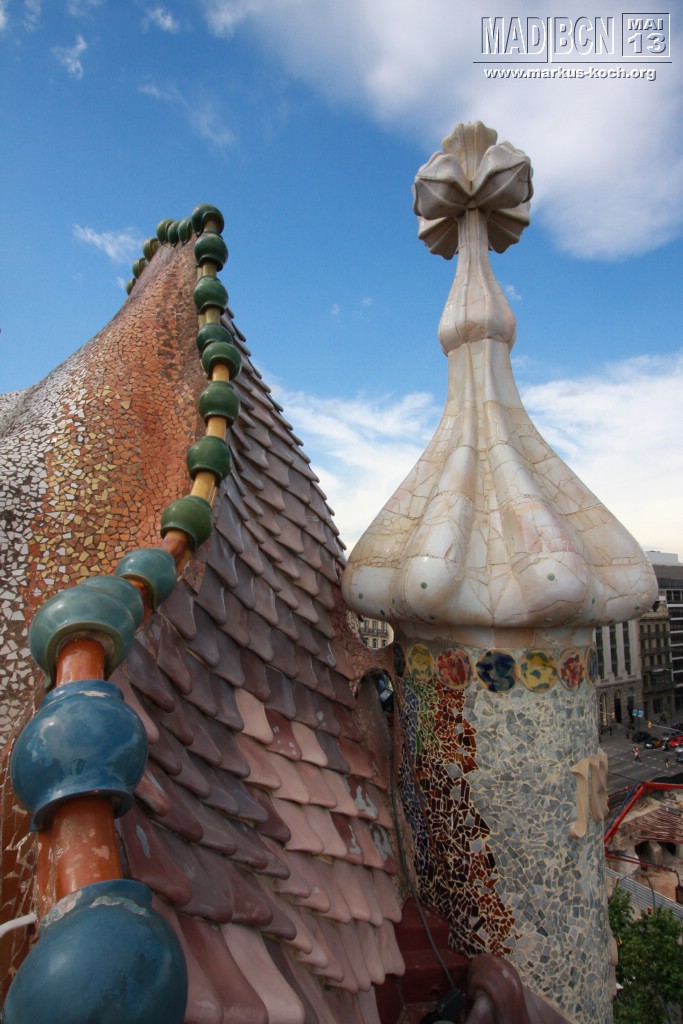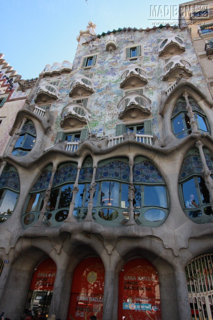 Casa Batlló – ein Werk Gaudis, dass einen im wahrsten Sinne des Wortes wegflasht! Ein Wohnhaus umgebaut mit einer „organischen“ Fassade und fantastischen Kaminen auf dem Dach, dass seit 2005 ein UNESCO Welterbe ist. Alles in diesem Haus ist genial und man kann es hier gar nicht wiedergeben. Nur ein Besuch kann dies wiederspiegeln!