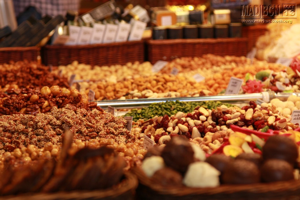 Fast K.O. ging es erstmal Richtung Hotel mit kurzem Besuch des Marktes „La Boqueria“ in der Nähe unsers Hotel. Wieder eine riesige Markthalle mit allem was man so an Lebensmittel kaufen kann. Von Süßigkeiten über Obst bis hin zu Fleisch und Fisch.
