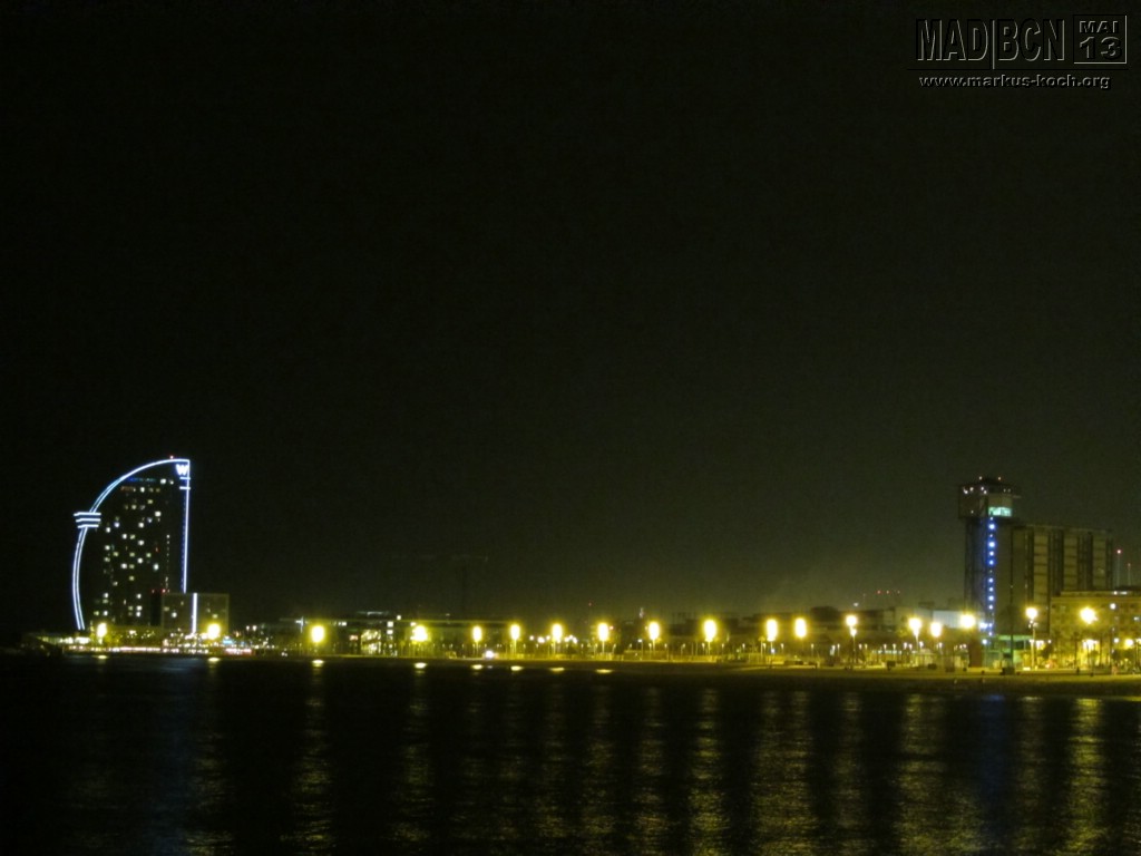 Am Abend feierten wir am Strand Platja Barceloneta in meinen 36. Geburtstag hinein. Erst speisten wir dort in einem der vielen Strand-Bars-Restaurants-Clubs, dem Opium, danach suchten wir uns direkt am Mittelmeer einen ruhigen Platz und stießen an.