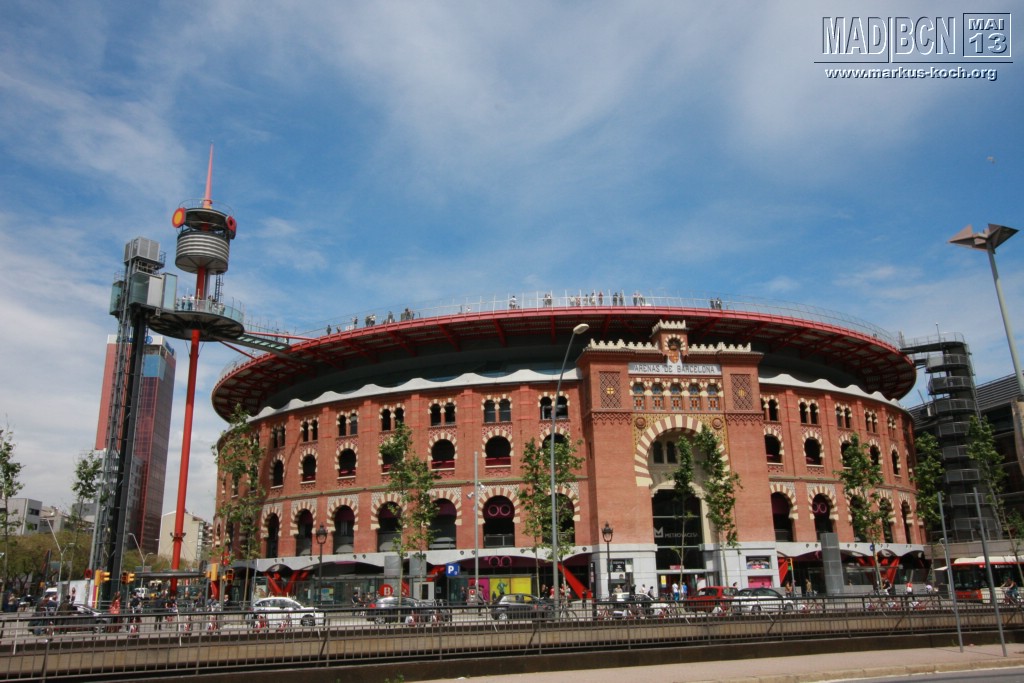 Das heutige Hauptziel sollte der Berg Montjuic sein. Angefangen haben wir am Placa d‘Espanya. An diesem Platz steht eine alte Stierkampfarena (Las Arenas) – jetzt nur noch als Shoppingcenter und Aussichtspunkt fungierend. Ein schöner Ausblick auf den Brunnen des Placas, den zwei 47 Meter hohen Türmen (ähneln dem Glockentrum des Markusdoms Venedigs) und auf das Palau Nacional (Nationalpalast). Dort liefen wir dann auch den Berg hinauf am Nationalpalast und dem Olympiagelände (1992) vorbei bis zur Seilbahn zum Castell de Montjuic auf dem höchsten Punkt des Bergs. Es war ein fantastischer Ausblick von da oben – die Stadt, der Hafen, der Flughafen, einfach alles von Barcelona! Genial – das ist auf jeden Fall ein Muss!