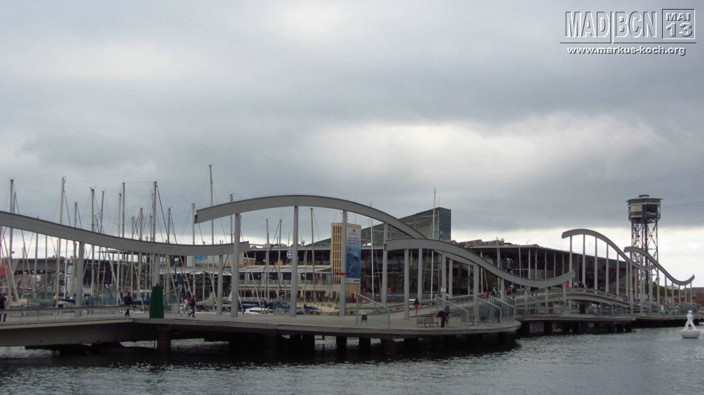 Fünfter und letzter Tag in BCN – es hat wohl Nachts ganz wenig geregnet und die Wolken hingen noch tief. Unser Plan war ohnehin, dass wir im Hafen in einem Shoppingcenter „Maremagnum“ noch ein bisschen (erfolgreich) Schlendern. Nach dem Mittagessen (Klasse Burger am Placa de’l Angel) ging es mit der U-Bahn nochmal zum Strand um ein wenig die Sonne, die mittlerweile raus kam, zu genießen.