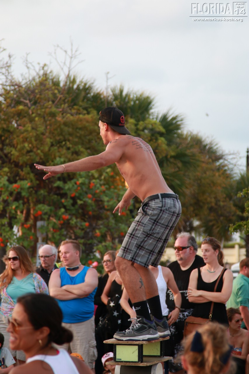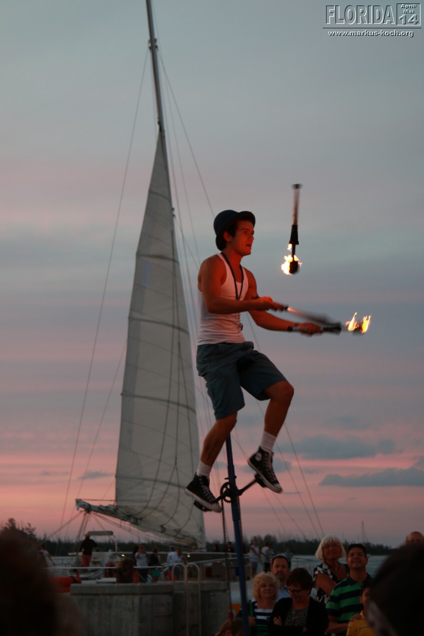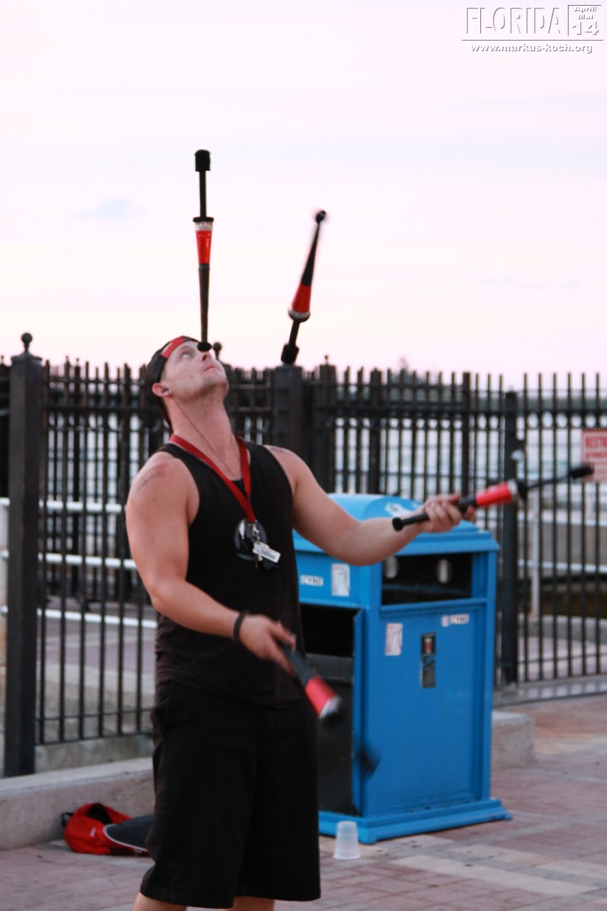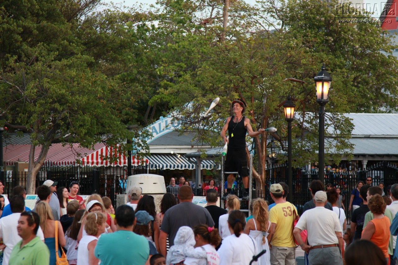 Abends zogen wir auf Beach Cruiser Bikes, die wir uns für hier gemietet haben, zum Mallory Square um den berühmten Sonnenuntergang Key Wests anzuschauen. Auf dem Platz waren Gaukler und viele kleine Attraktionen zu sehen. Abendessen beim Mexikaner in der Nähe der sehr belebten Duval Street mit anschließendem Besuch in einem Irish Pub mit Live-Musik. In diesem war ich 2010 auch schonmal mit der Gang 😉