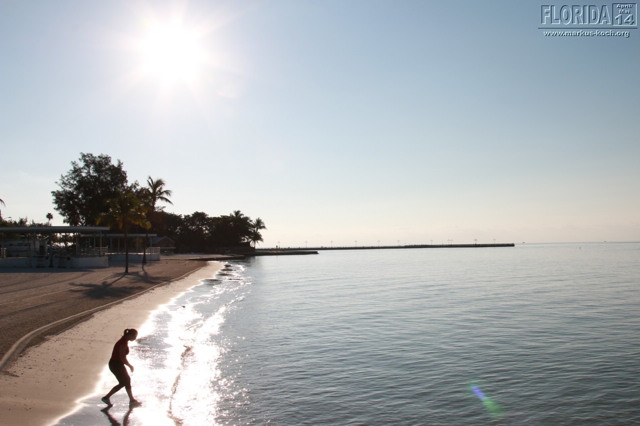 Nach dem Frühstück setzten wir uns Richtung Key West in Bewegung. Stopp haben wir im Bahia Honda State Park gemacht. Die kaputte Brücke ist immer noch kaputt. Von hier oben sah man auch ein paar Haie unten im Meer umherziehen 🙂 Ein paar Meter weiter schwammen andere Besucher im Wasser – gehört hier scheinbar einfach dazu 😉