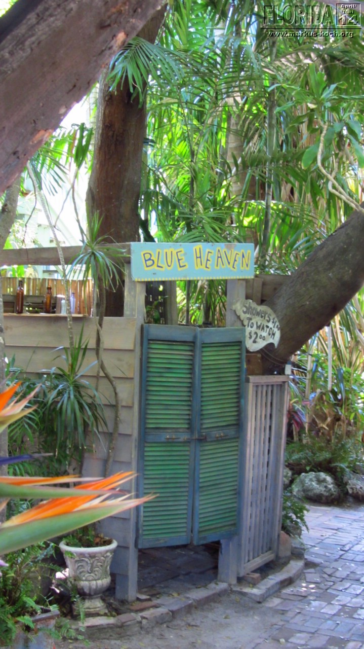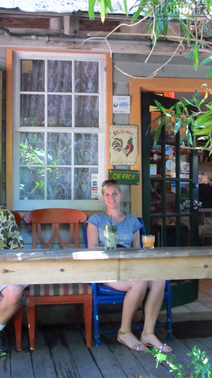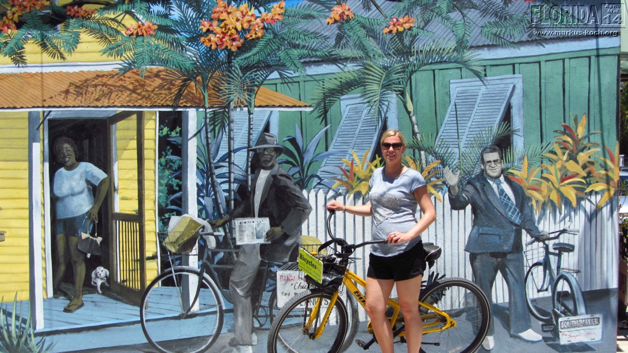 Da wir zeitig wach waren beschlossen wir vor dem Frühstück noch schnell mit den Fahrrädern zum Southernmost Point zu fahren, um den Fotoschlangen zu entfliehen. Nach dem leckeren Frühstück auf der Terrasse klapperten wir noch ein paar Hotspots ab: Lighthouse (super Blick von da oben über ganz Key West), Ernest Hemingway House (waren aber nicht drinnen), Fort Zachary Taylor Historic State Park (Fort errichtet 1845), Bahamas Village mit seinen Wandgemälden und einem echt coolem Restaurant/Bar „Blue Heaven“. Der Mojito um 12 Uhr Mittags bei dieser Hitze hat ganz schön gefetzt 😉