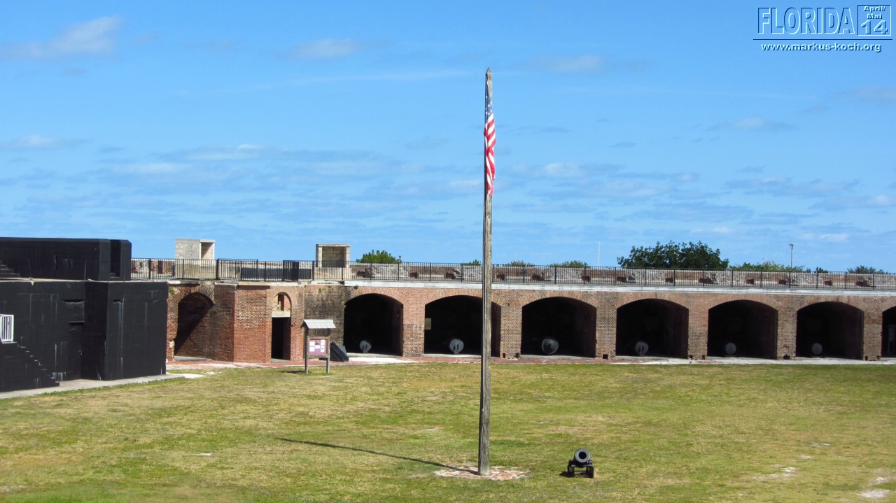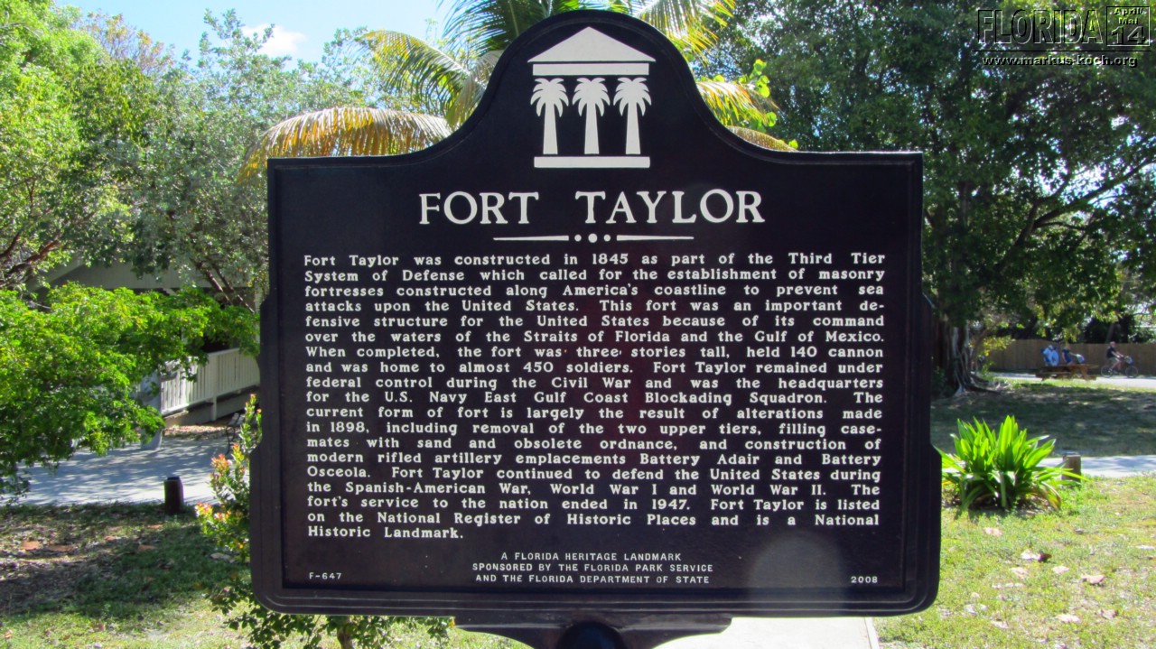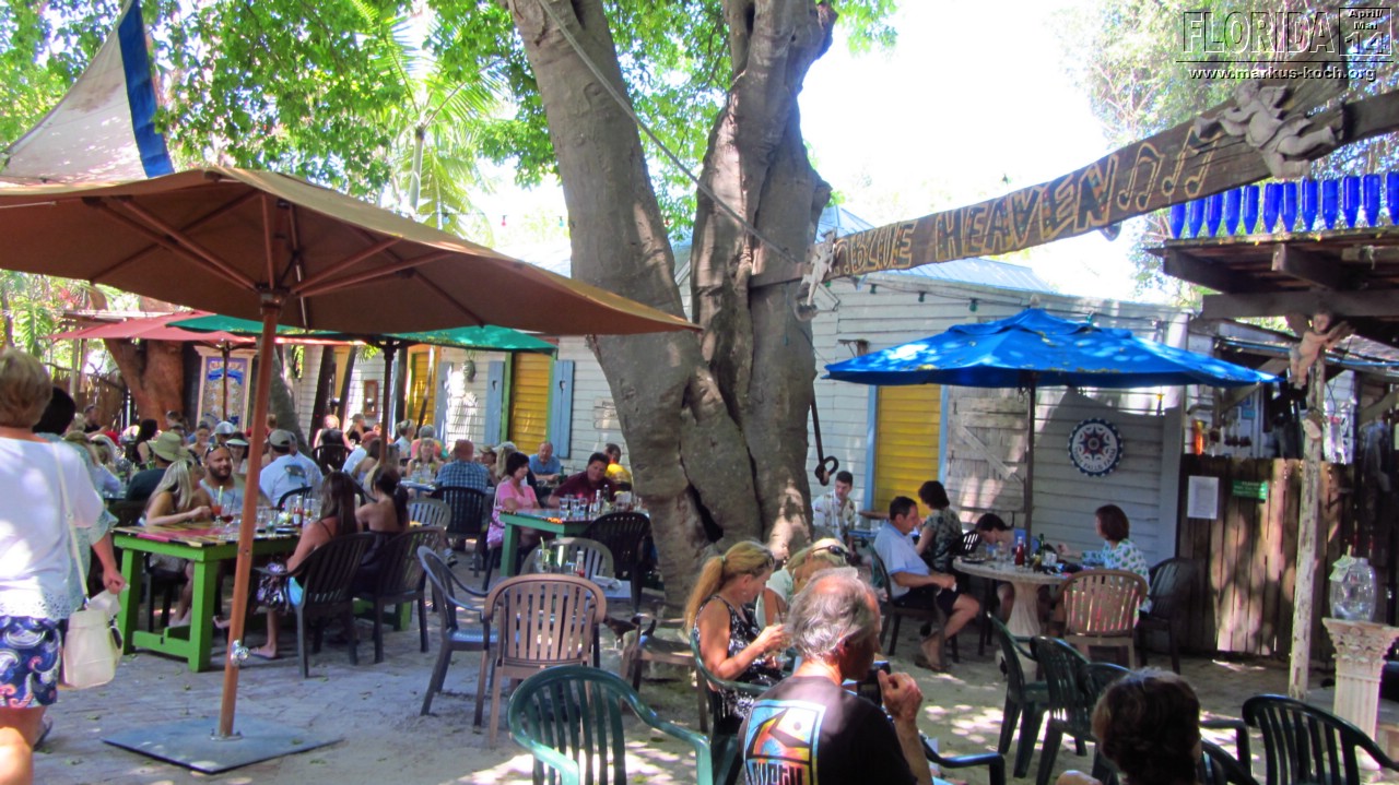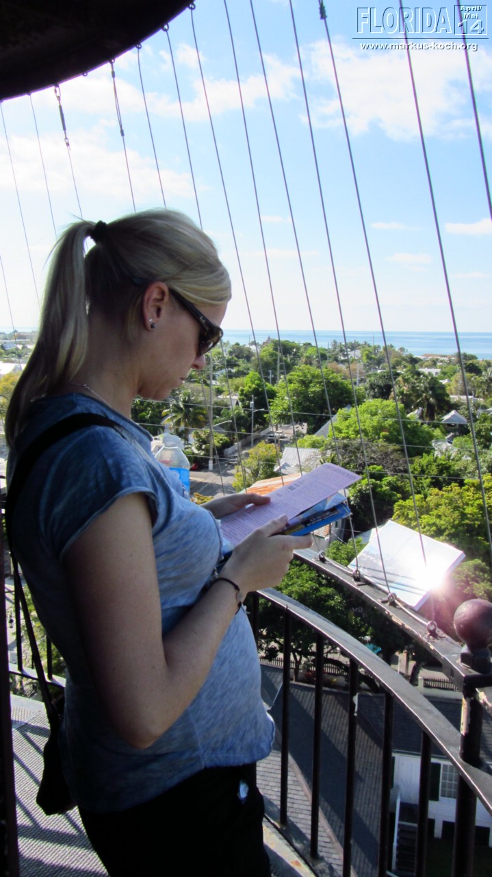 Da wir zeitig wach waren beschlossen wir vor dem Frühstück noch schnell mit den Fahrrädern zum Southernmost Point zu fahren, um den Fotoschlangen zu entfliehen. Nach dem leckeren Frühstück auf der Terrasse klapperten wir noch ein paar Hotspots ab: Lighthouse (super Blick von da oben über ganz Key West), Ernest Hemingway House (waren aber nicht drinnen), Fort Zachary Taylor Historic State Park (Fort errichtet 1845), Bahamas Village mit seinen Wandgemälden und einem echt coolem Restaurant/Bar „Blue Heaven“. Der Mojito um 12 Uhr Mittags bei dieser Hitze hat ganz schön gefetzt 😉