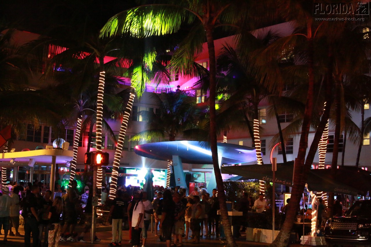 Aus dem Grund hat es dann auch etwas gedauert, bis wir direkt an unserem Hotel „Bentley“ am Ocean Drive waren. Aus unserem Fenster des Hotels oder von oben am Pool konnten wir das lustige Treiben schon erkennen. Hochgebockte Autos, aus denen der Gangster-Sound vibrierte. Es war am Ocean Drive die Hölle los, wir sind mal hoch und wieder zurück gelaufen.