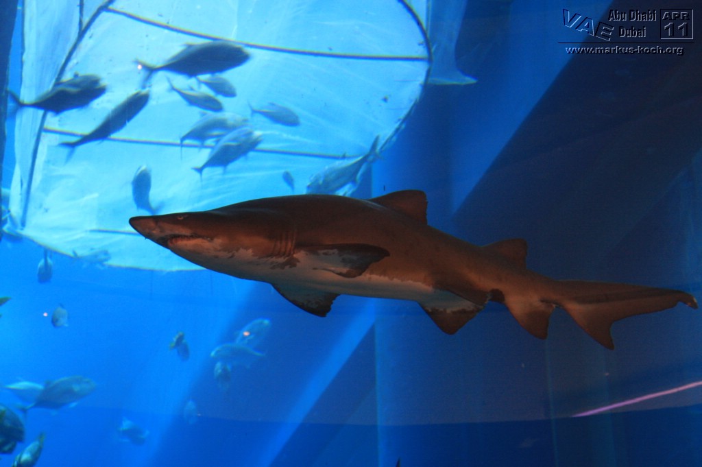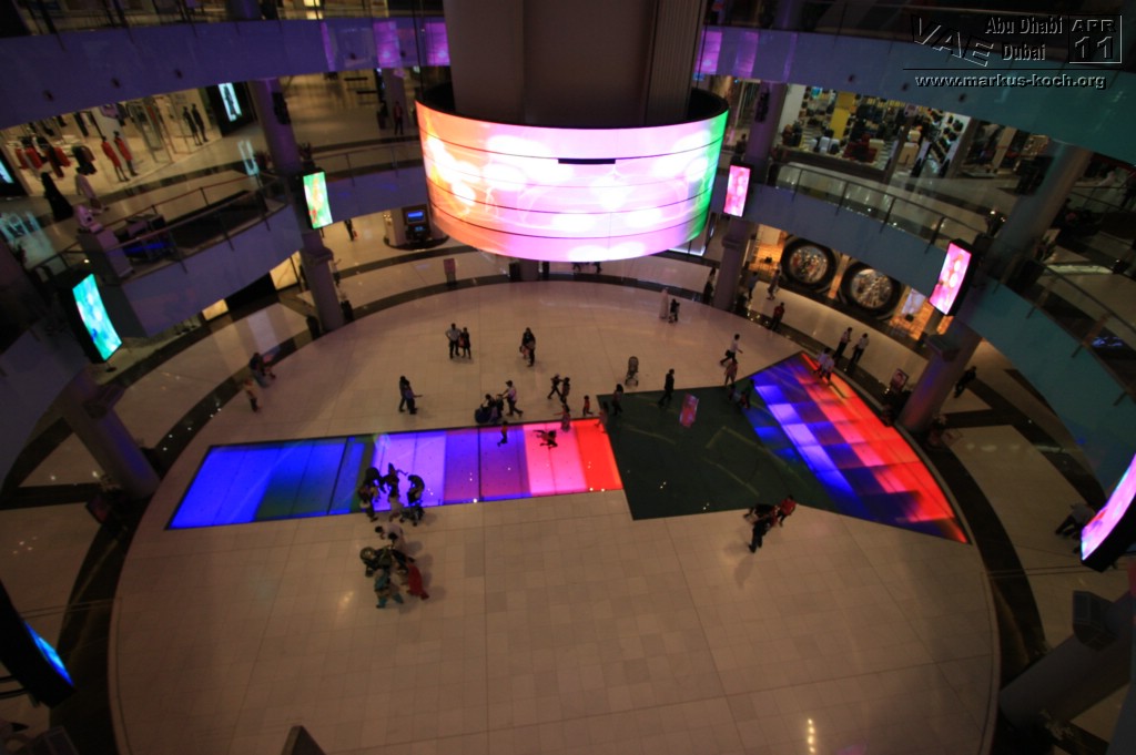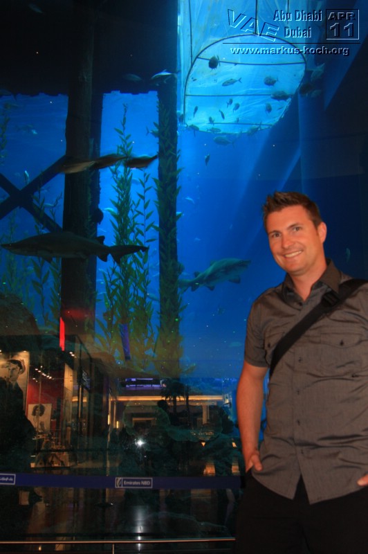 Nach kurzem Stopp im Hotel waren wir auch schon wieder in der Dubai Mall auf der anderen Seite. In der Mall kann man einen großen Wasserfall mit Cliffdivern an den Wänden, die Eislaufbahn inmitten der Shops, vielen Kinos für die Unterhaltung und das enorme Unterwasseraquarium besichtigen. In diesem befinden sich tausende Fische, Haie und Rochen. Hätten wir die Zeit gehabt wären wir für ca. 10 Euro (was eigentlich aber viel Geld ist) durch den Unterwasssertunnel unter dem Aquarium gegangen.