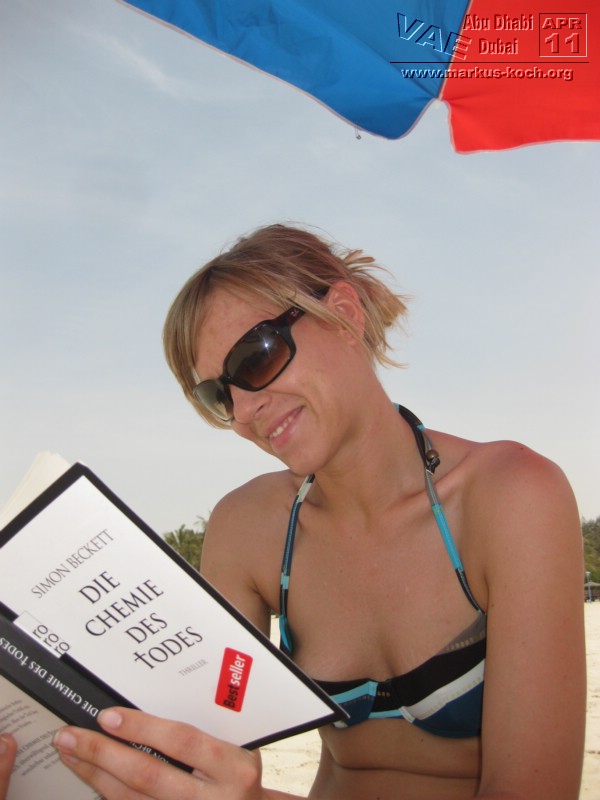 Kurzer „Check-In“ in deren tollen, großen und gottseidank mit Klimaanlage ausgestatteten Wohnung. Danach haben wir noch eine kleine Runde durch die Innenstadt mit dem Auto gedreht. Am Emirates Palace (irre groß!) vorbei an den Strand. Bei den Temperaturen einfach herrlich. Genial war das Sandburgenfestival, wo nur 5 Sandhaufen aufgeschüttet waren – naja 😉