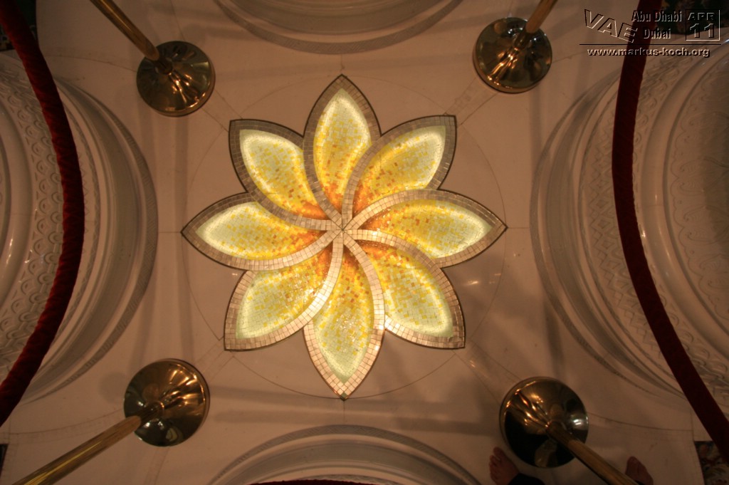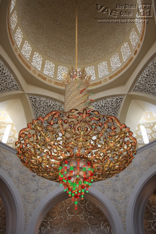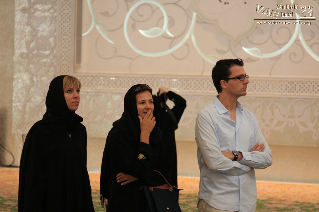 Der letzte Tag in den VAE begann mit dem Sightseeing-Highlight – der Sheikh-Zayed-Moschee von Abu Dhabi. Sie ist die weltweit drittgrößte Moschee. Wirklich beeindruckend dieses Bauwerk. Die Mädls haben eine schwarze Abaya (ein schwarzes Gewand mit Kopfbedeckung) tragen müssen; Männer mindestens lange Hose. Alle mussten wir zum Bestaunen barfüßig sein, um die riesigen Innenkuppeln mit deren super schweren und enorm großen, glitzernden Kronleuchtern zu sehen.