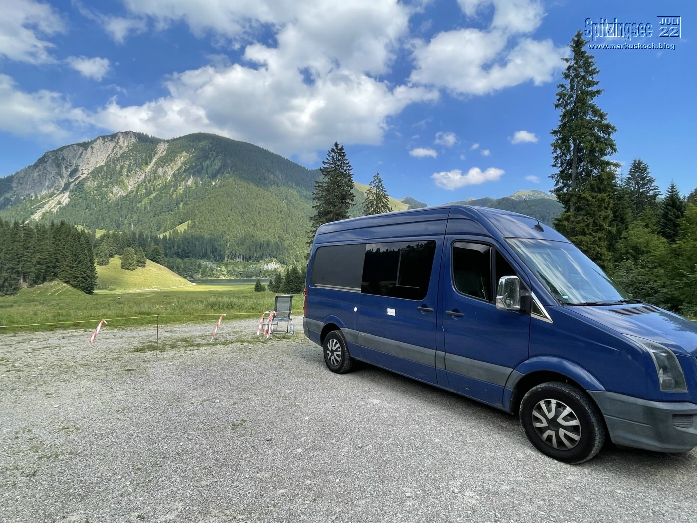 Nachdem ich noch etwas am Campervan Toni herumgebastelt hatte, fuhr ich Abends noch zum Spitzingsee. Da ich nicht wusste, ob direkt am See noch etwas frei ist, entschloss ich mich im Tal an einem Wanderparkplatz für 6 € zu übernachten.