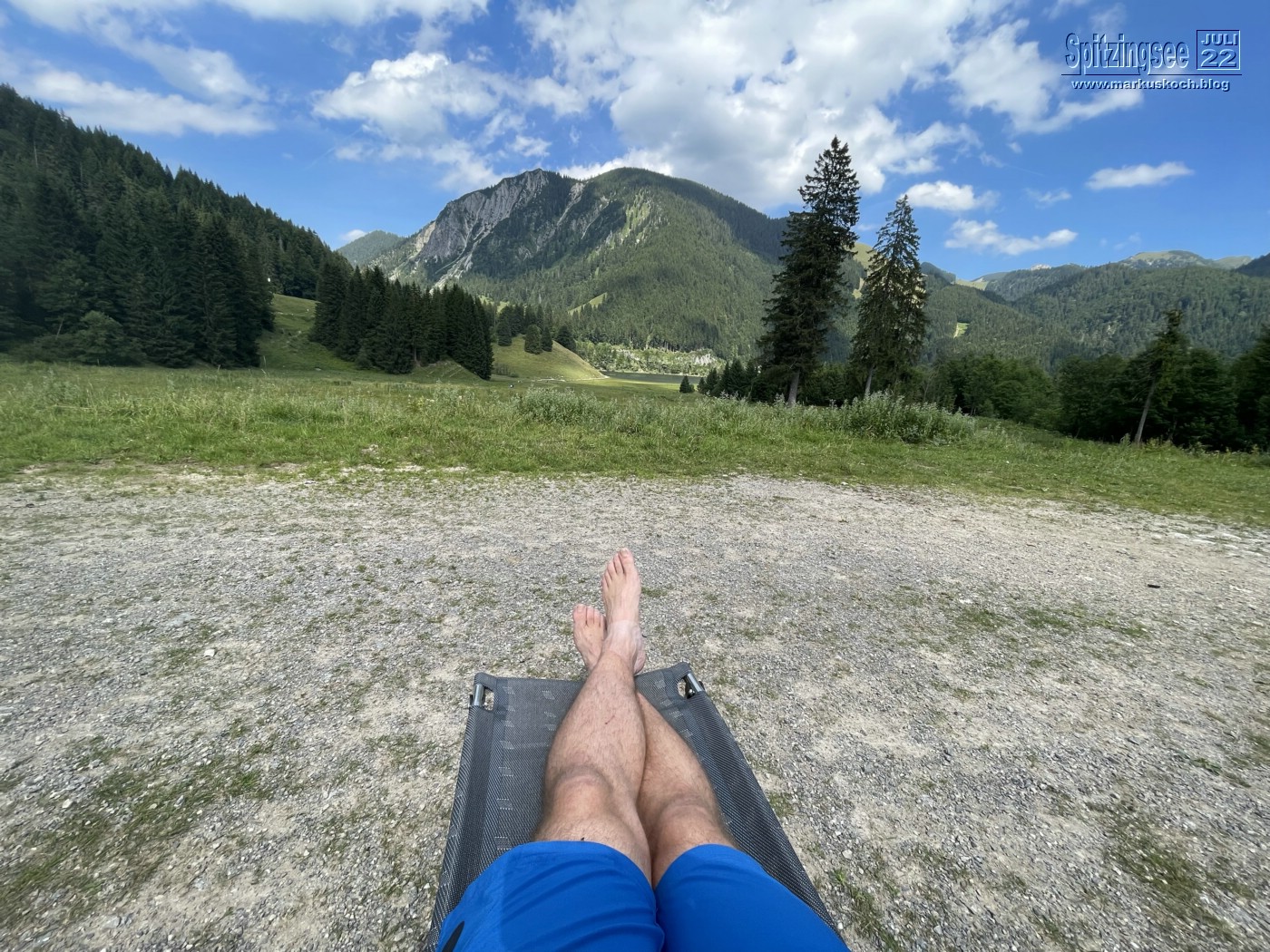 Dann machte ich mich auf eine Wanderung zum Jägerkamp Gipfel und von da weiter zum Rotwand Gipfel. Nach dem Mittagessen am Rotwandhaus ging es wieder ins Tal. Relaxed auf einer Hotelterrasse und dann im Liegestuhl genoss ich den Nachmittag mit Blick auf den Spitzingsee.