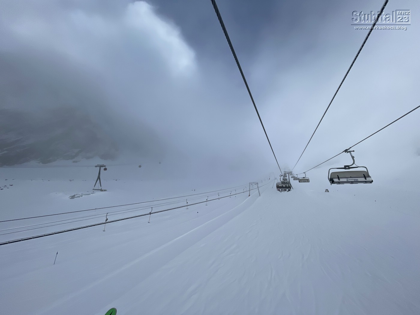 Aufgrund des etwas schlechterem Wetters ging es ins tiefere Skigebiet vom Gletscher: Rifflsee. Jedoch war fast an keine Sicht zu denken erst. Es gab auch nur einen Berg mit 3 guten Pisten, aber das war es auch schon.