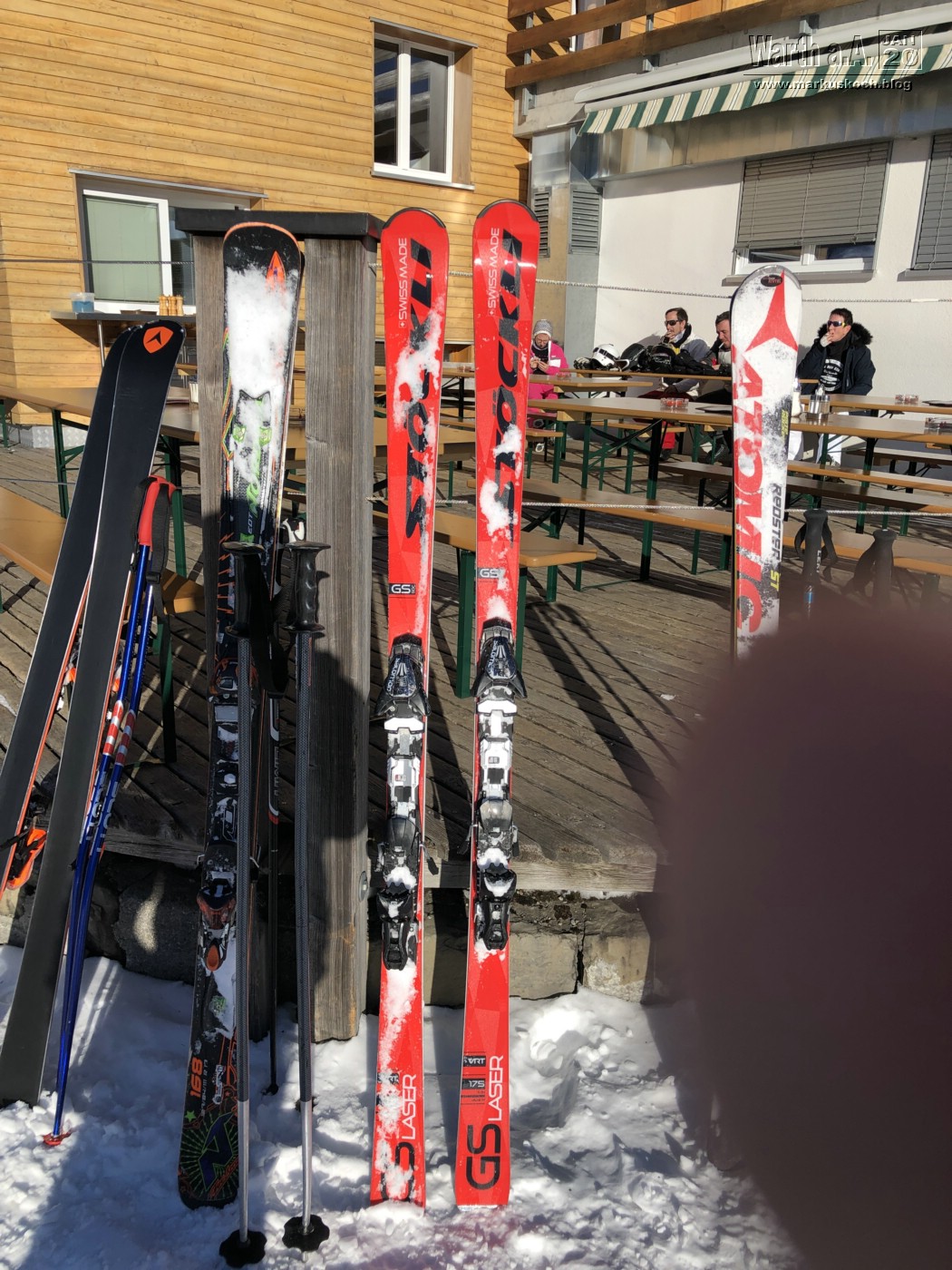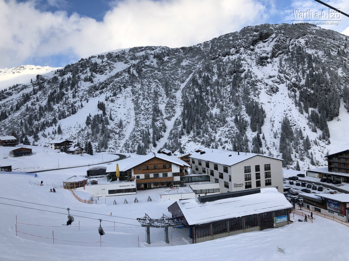 Heute versuchten wir, während Luca im Kurs war, selbst etwas Ski zu fahren. Dies klappte aber nur mittelmäßig, da es in der Nacht viel geschneit hatte und die Piste schon vormittags in einem eher schlecht fahrbaren Zustand war. Zudem kam noch die Plus-Temperaturen hinzu. Aber das Wetter klare gigantisch auf mit viel Sonne 🙂
