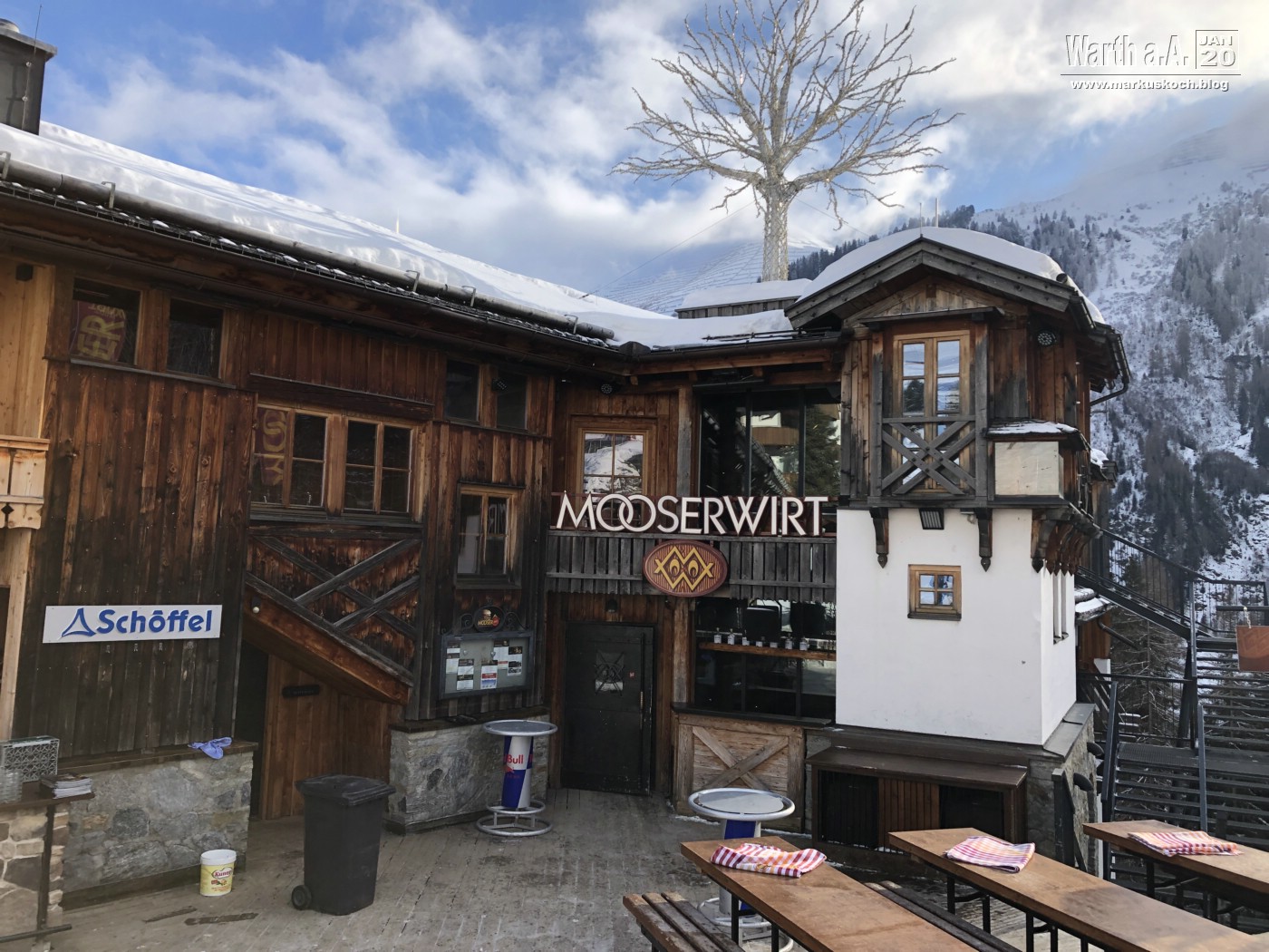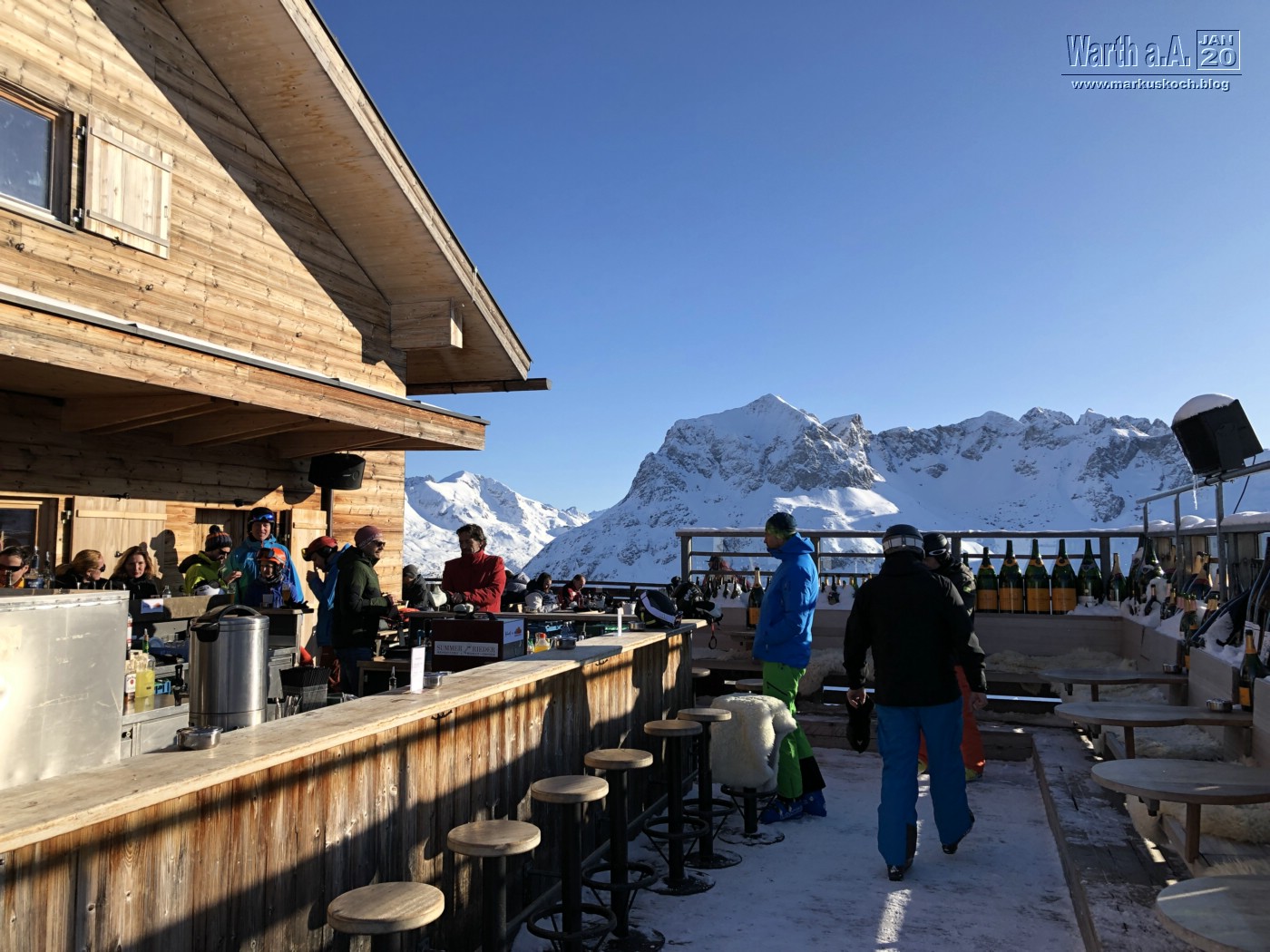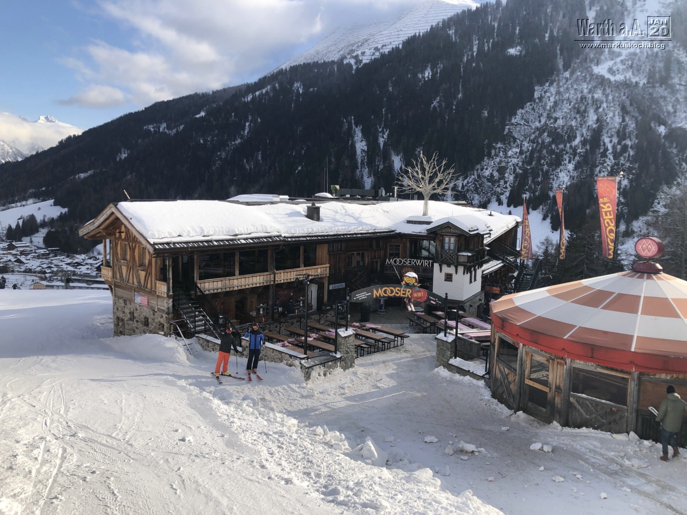 Wir trafen uns dann alle auf der Wieser-Alm zum Mittag (weltbester Kaiserschmarren). Danach ging es mit den Ski weiter zu Luis-Alm. Dort waren DJs & Co von den White Pearl Mountain Days. Zufällig trafen wir dort Christian Leimeister & Oliver Leister, die spontan an dem Wochenende auch in Zell am See waren.