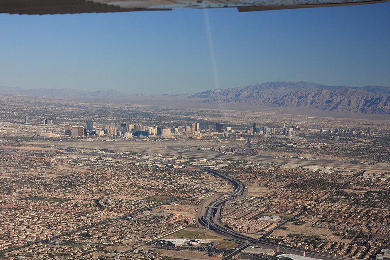 Der Bus fuhr dann wieder zum Mini-Airport zurück, wo unsere Maschine um ca. 12.30 p.m. dann schon wieder Richtung Las Vegas zurück flog. Der Ausblick war auch sehr sehr geil! Nochmal für ein Stück über den Grand Canyon, vorbei am Hoover Staudamm (Lake Mead) mit Blick auf LAS zum Flughafen (war aber nicht der Grosse, sondern ein kleinerer von den Dreien in LAS).