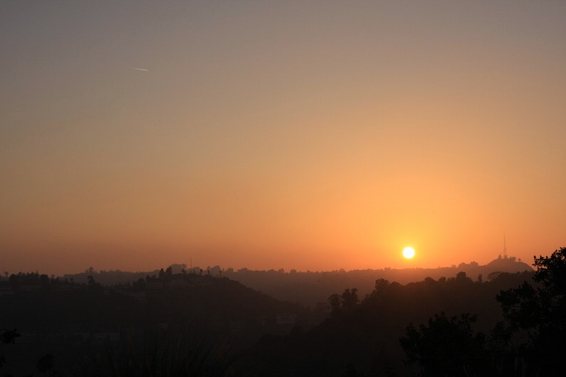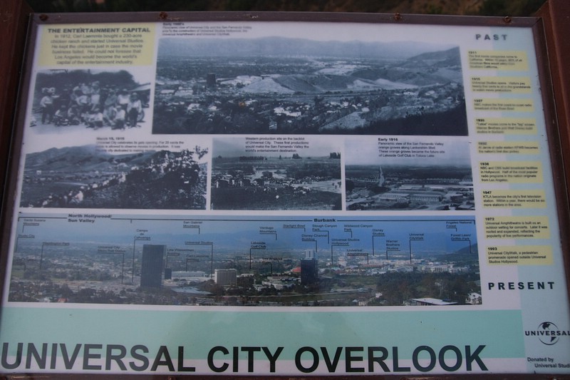 Zum Sonnenuntergang fuhren wir den Mullholand Drive entlang. Auch dort wieder ohne Ende Villen am Straßenrand. Der Blick über L.A. wäre auch super gewesen, wenn nicht eine Smog-Dunst-Glocke über der Stadt gewesen wäre. Von dort oben sah man auch die Universal City mit seinen Studios.